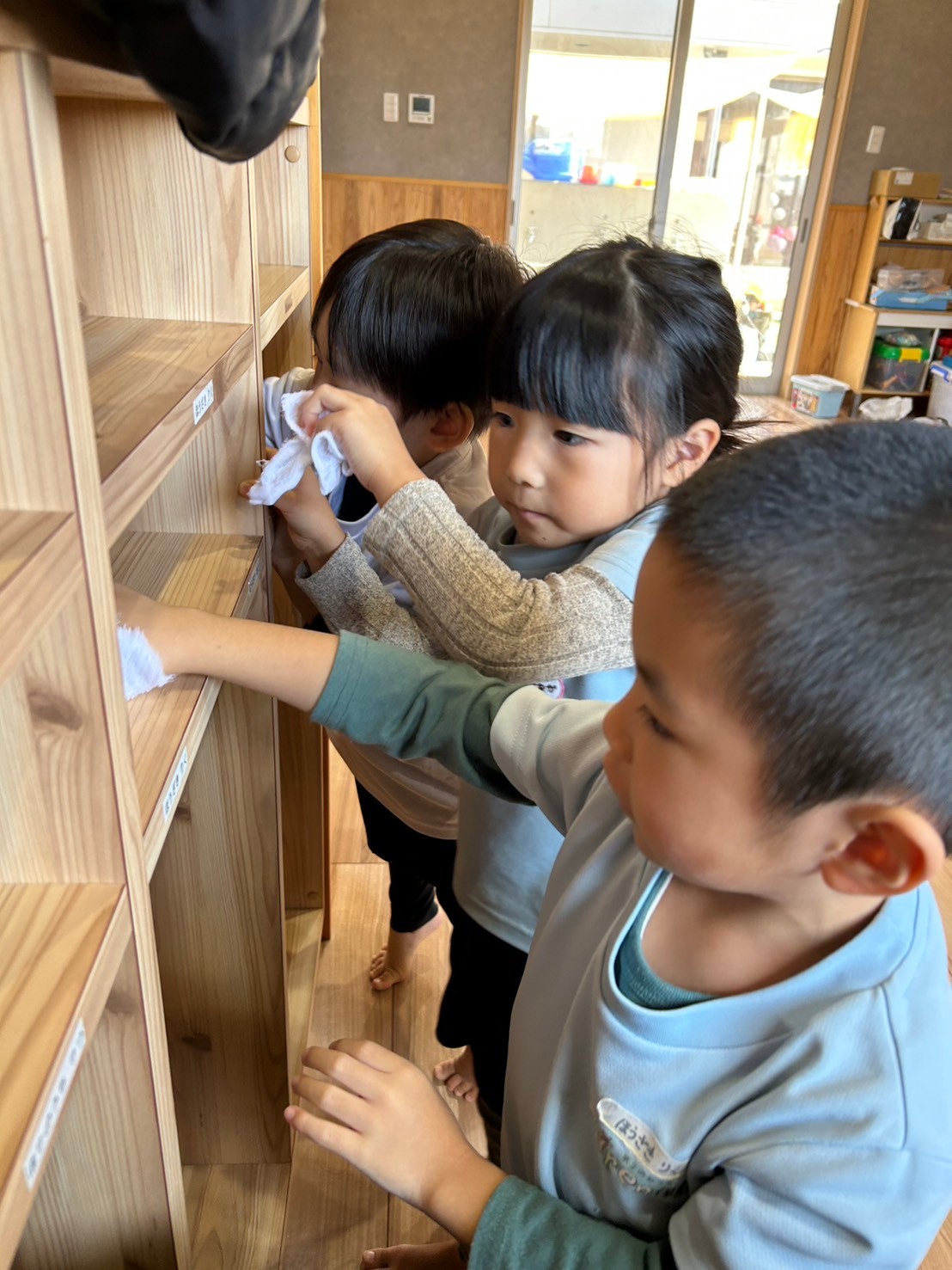 黒くなっていく雑巾片手に「見てみて〜」と先生やお友だちに自慢げな子どもたちでした😁🩷