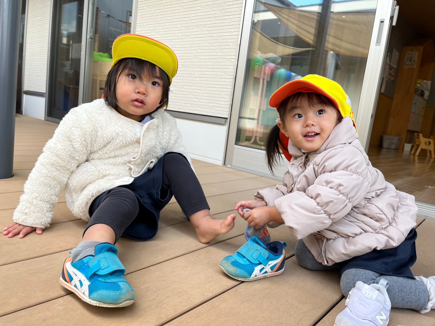 昨日上着の着方を教えて貰っていたりす組さん💗