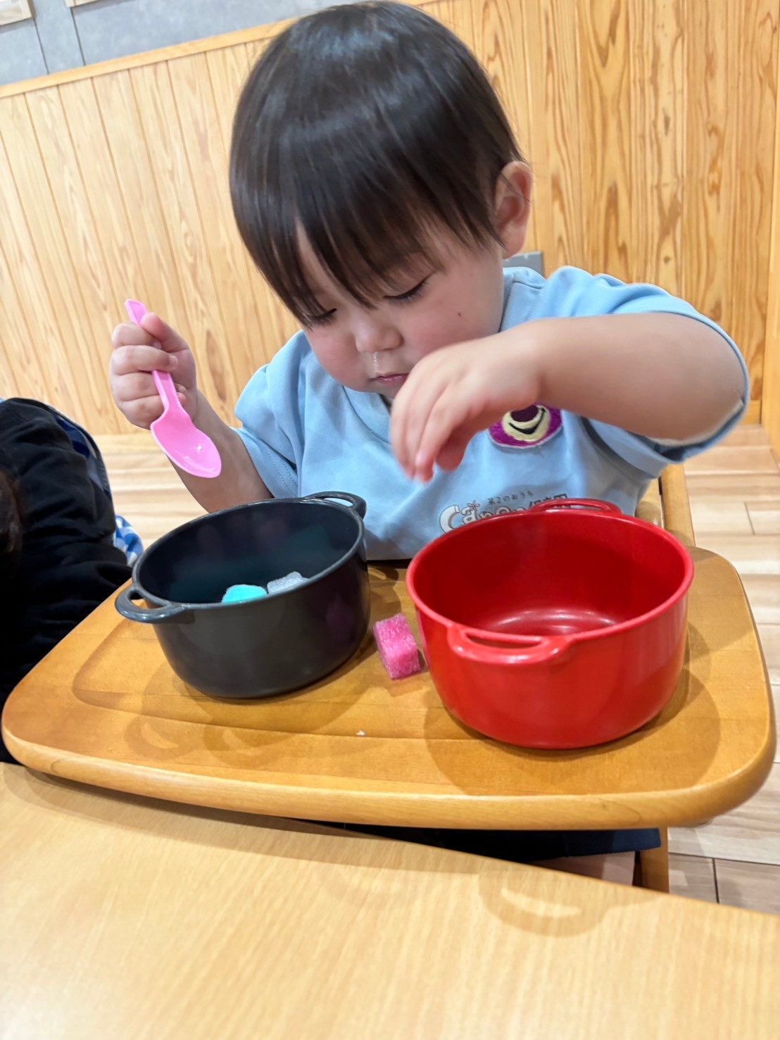 スプーン🥄遊びをして、容器から容器に移していきました😍