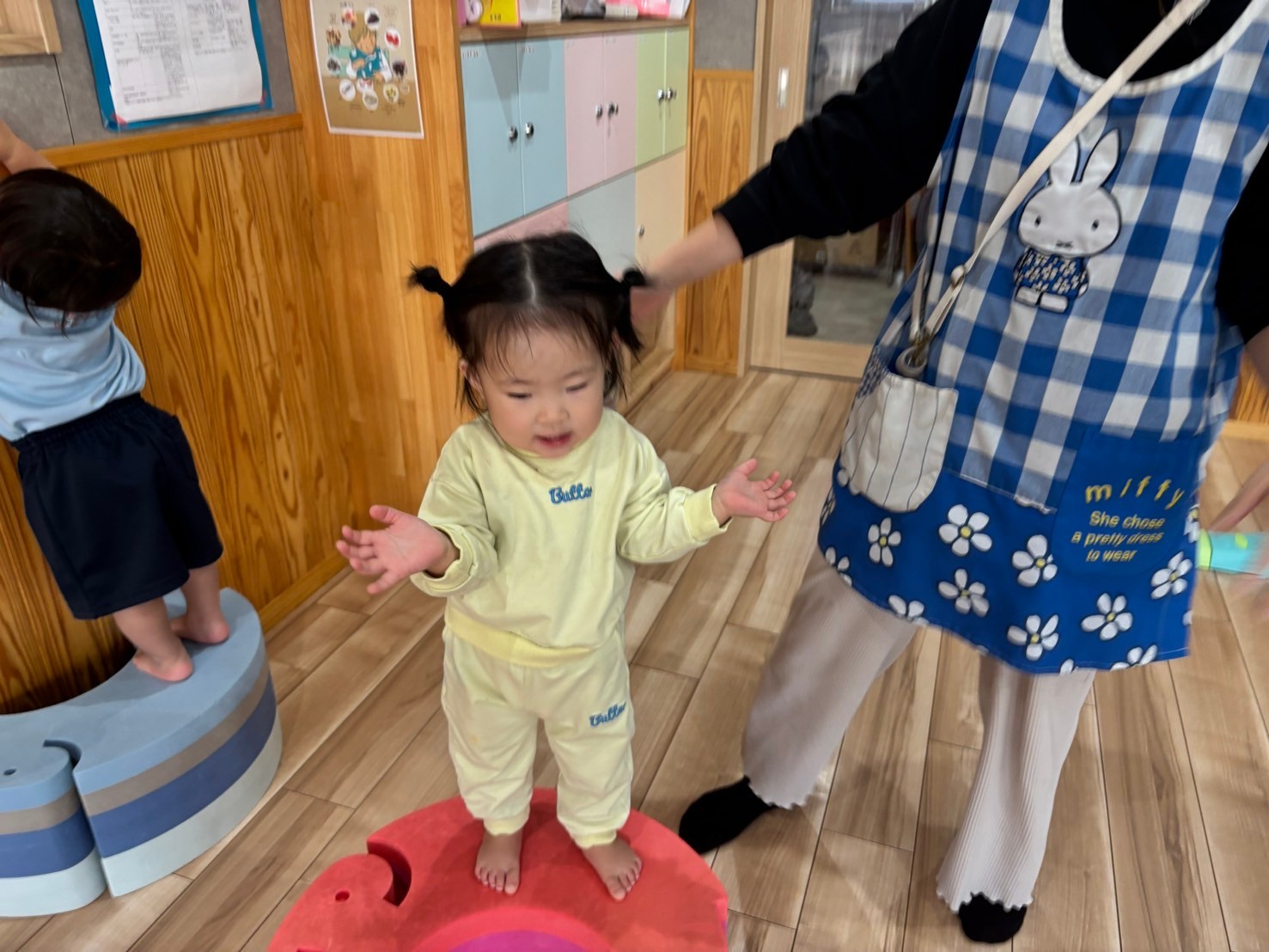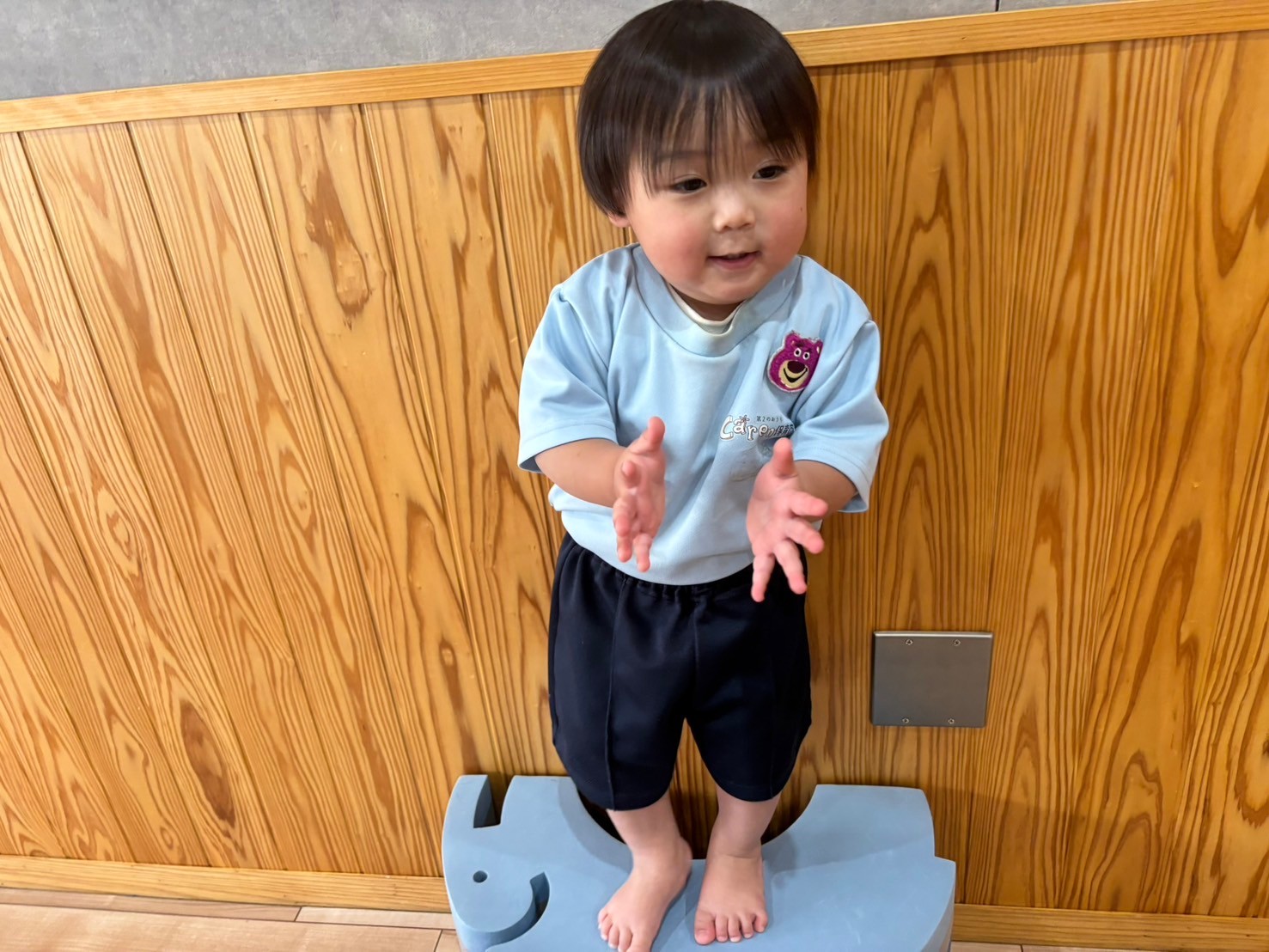 先生と一緒に動かし、出来ると嬉しそうに拍手する子どもたち👏すくえない子も自分でスプーンに乗せたり指で移動させたりと夢中になってしていましたよ♡食具への意識が持てるように楽しみながら進めていきたいです💕その後、滑り台🛝やトンネル、平均台で身体を動かして遊びましたよ🎵ゾウさんの🐘台に乗ってお立ち台のようにステージで踊っていたひよこぐみさんでした🕺✨