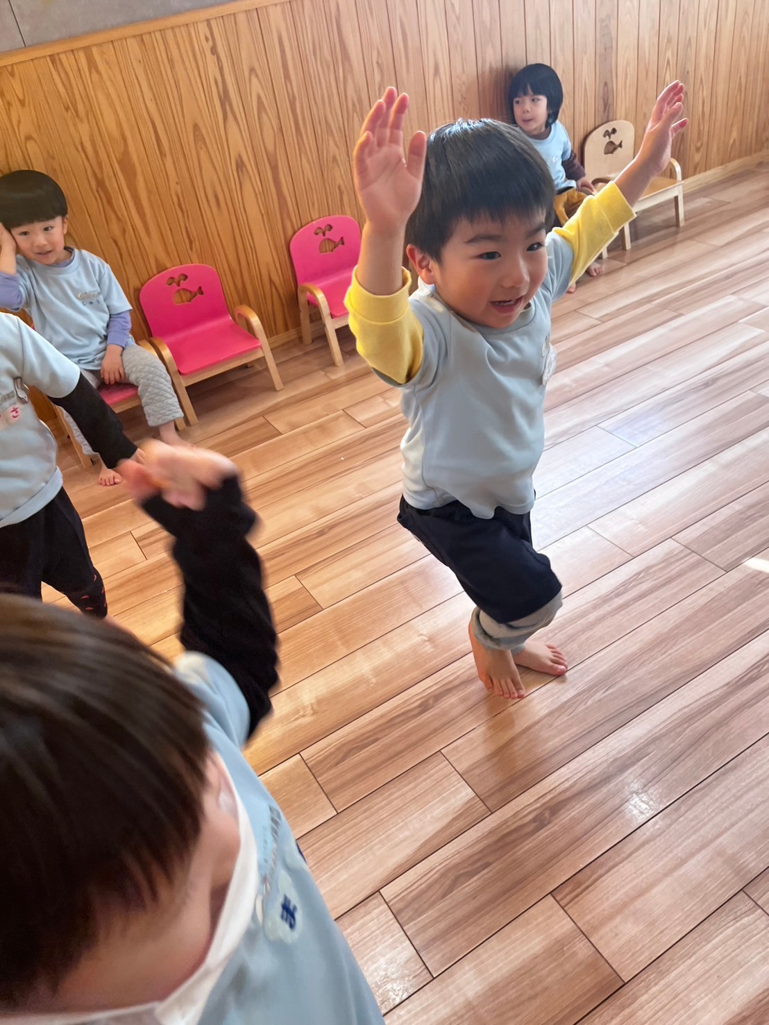 その後体操をして体を動かしました🎶去年踊ったダンスの曲をかけたり、子どもたちのリクエストの曲をかけると楽しそうに踊ってくれました😆💖うさぎ、こあら、きりん組