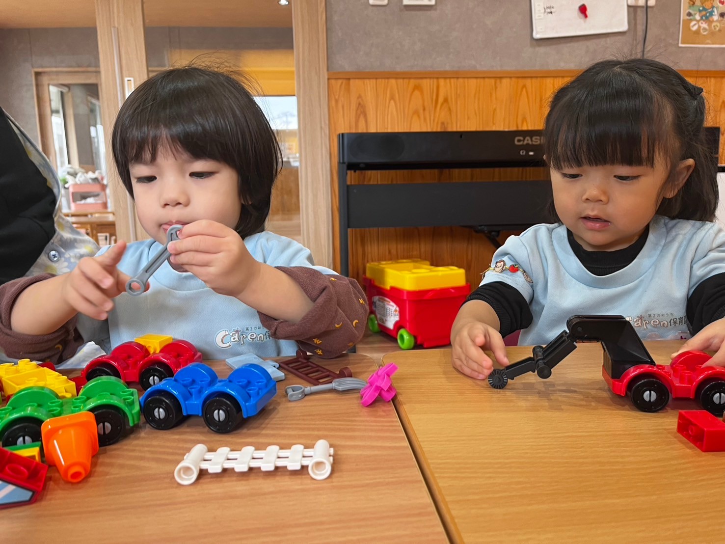 ブロック遊びでごっこ遊びを楽しむ姿が見られたり、お友達が落としたブロックを拾ってあげたり、もらったお友達はお礼を言えたり、他の子が欲しそうにしている玩具を自ら貸してあげる優しい姿がたくさん見られました🥰