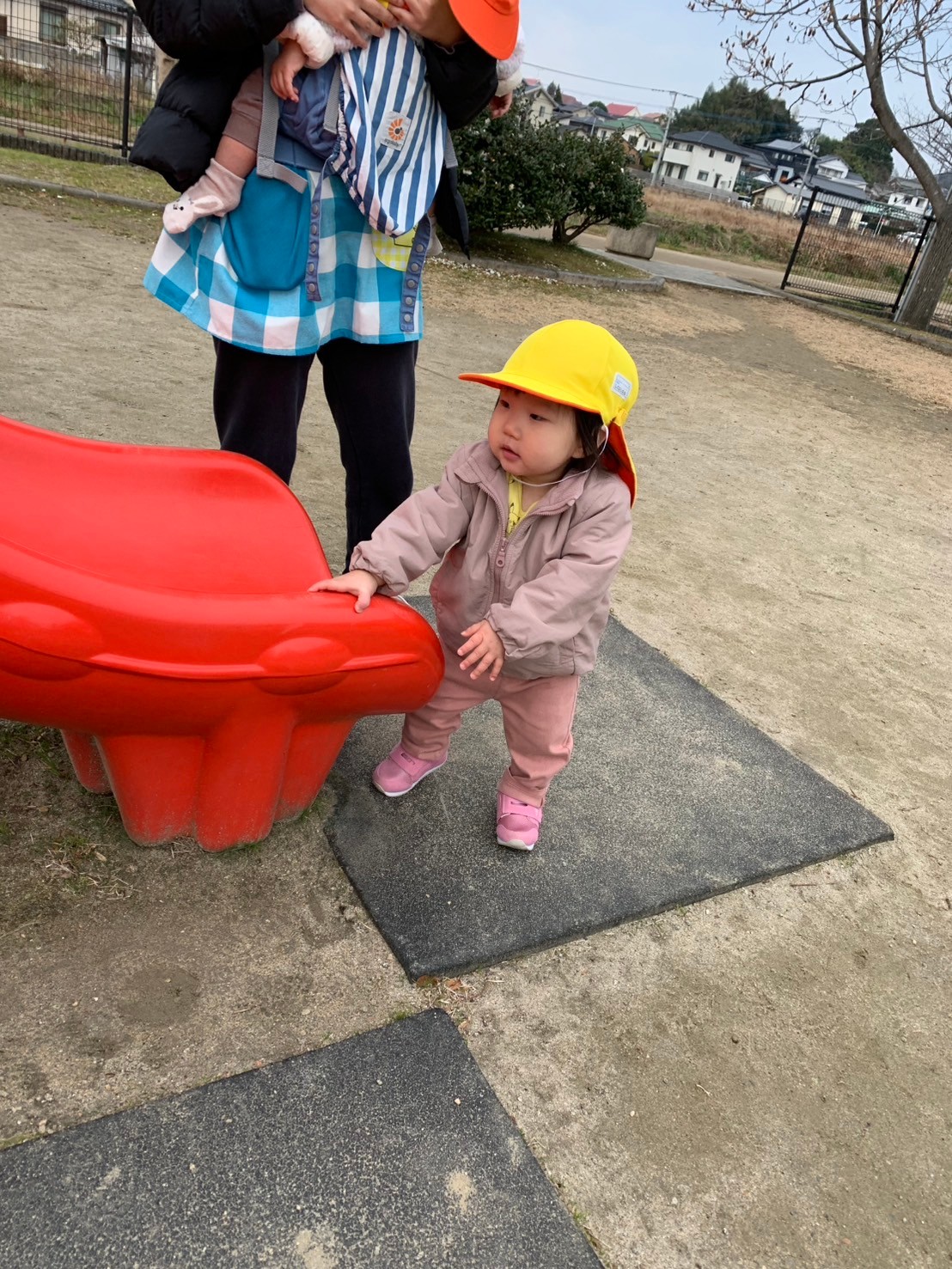 今日は寒さも和らいでいたのでふれあい公園へひよこ組さんとお散歩に行きました🌞「お散歩に行きま〜す」の声かけで大喜びで💕ジャンパーを自分で着ようと頑張りましたよ✌️💕
