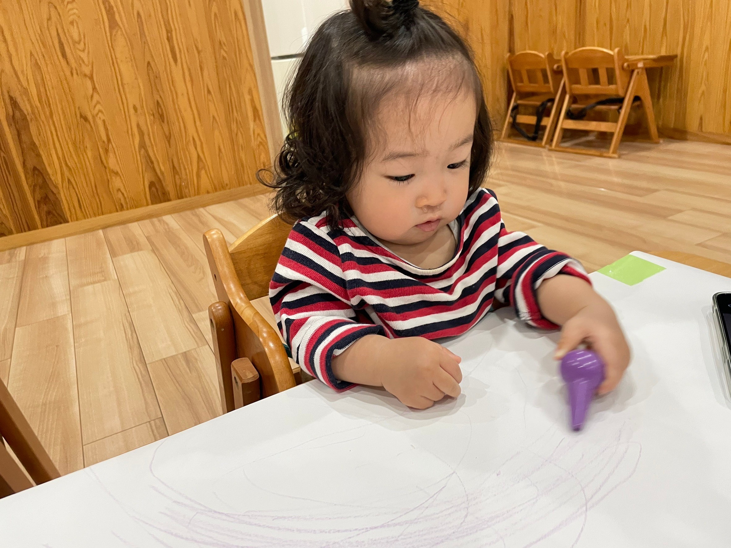 その後は、机に模造紙を広げてクレヨンでお絵描きをしました😊