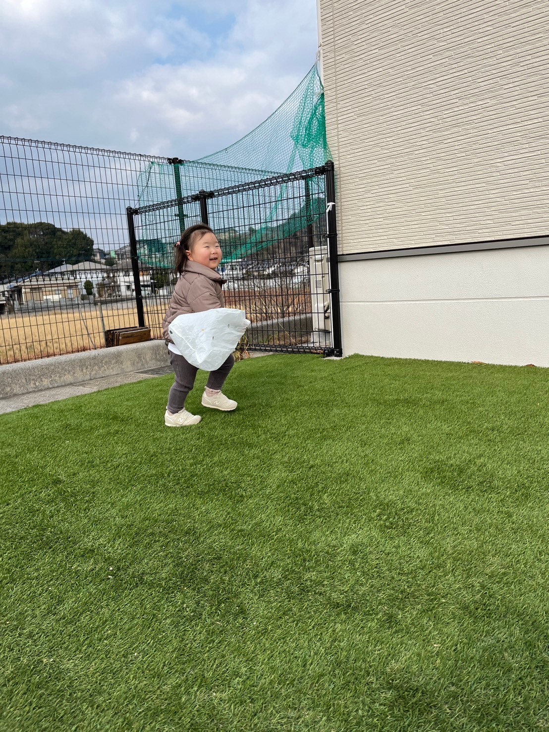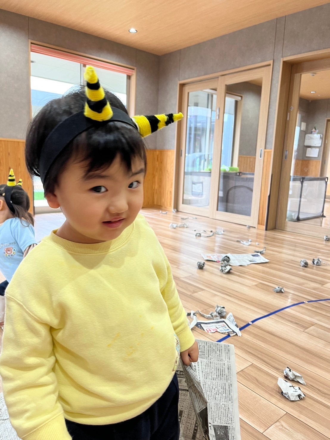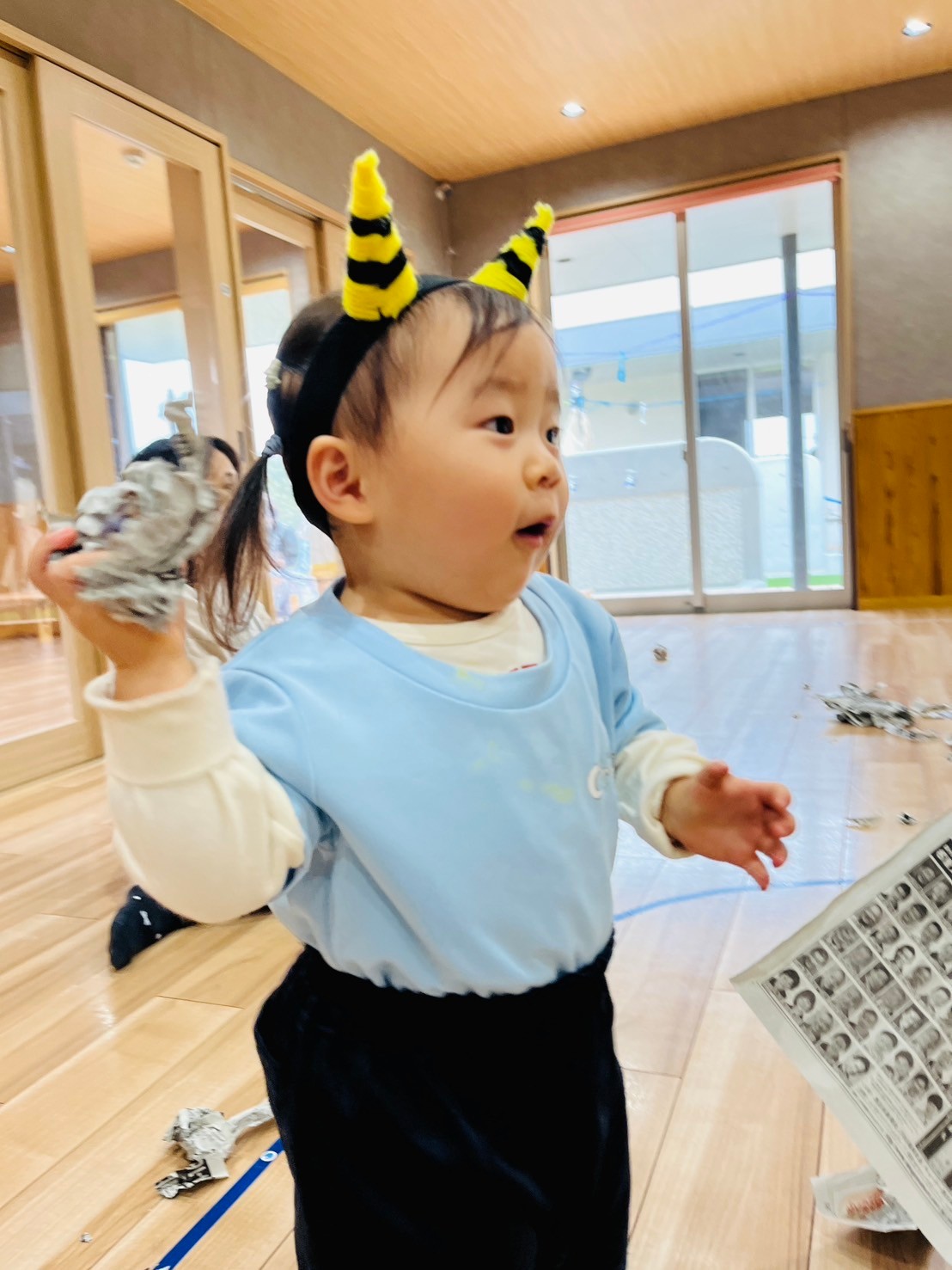 その後節分のお話をしました😈🤍心の鬼さんをやっつける練習をしよう!というと新聞紙をちぎって丸めて「そと!」「鬼は外!!」と一生懸命投げていました🩷