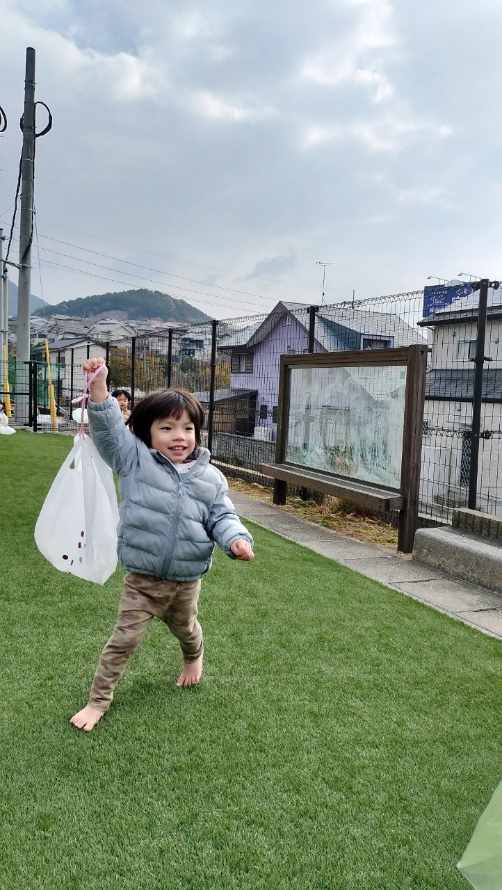 ぱんだ組さんが凧揚げをしていたので、先日の活動を思い出したお友達が「凧したいー」と言いお部屋にあった先生の凧を順番に使って楽しんでいました🙌