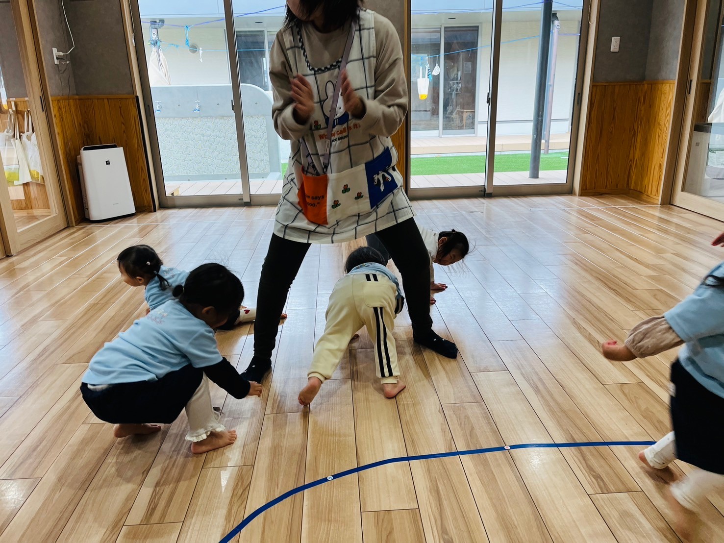 その後は「ゆき」の歌に合わせてフープを使いけんぱ遊びを行いました😁
