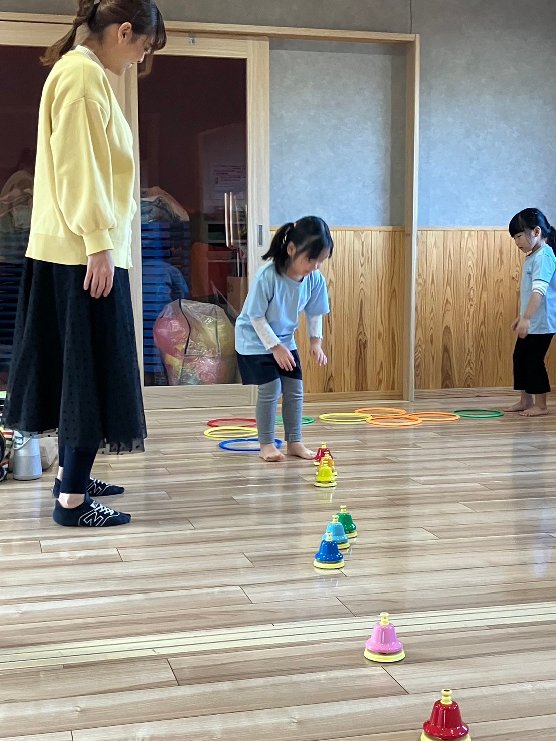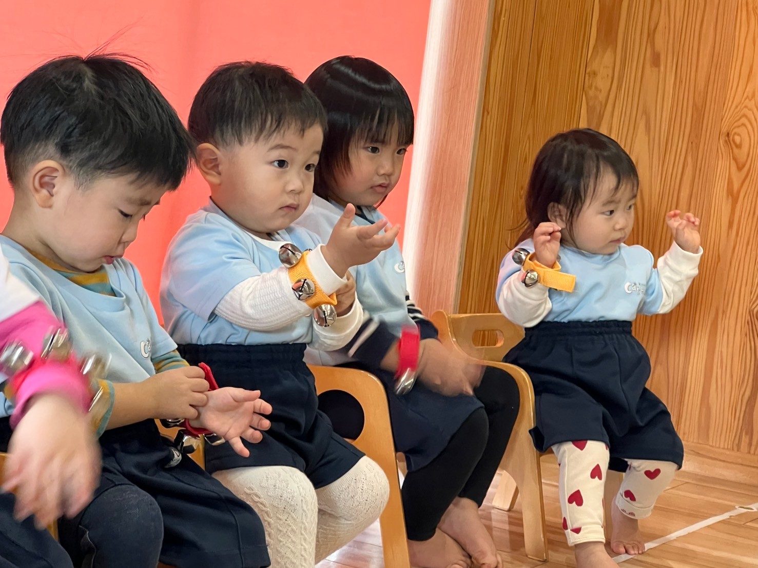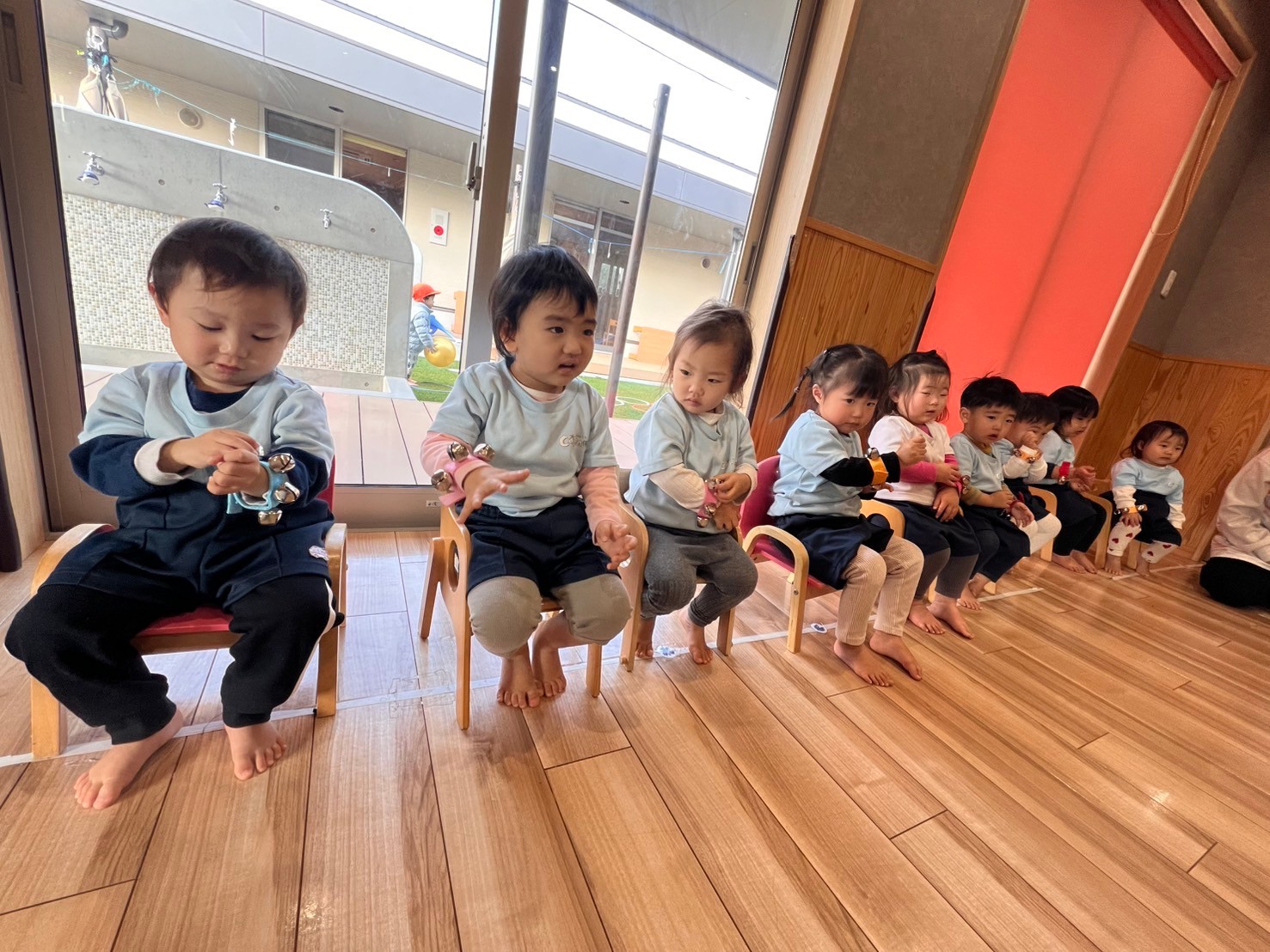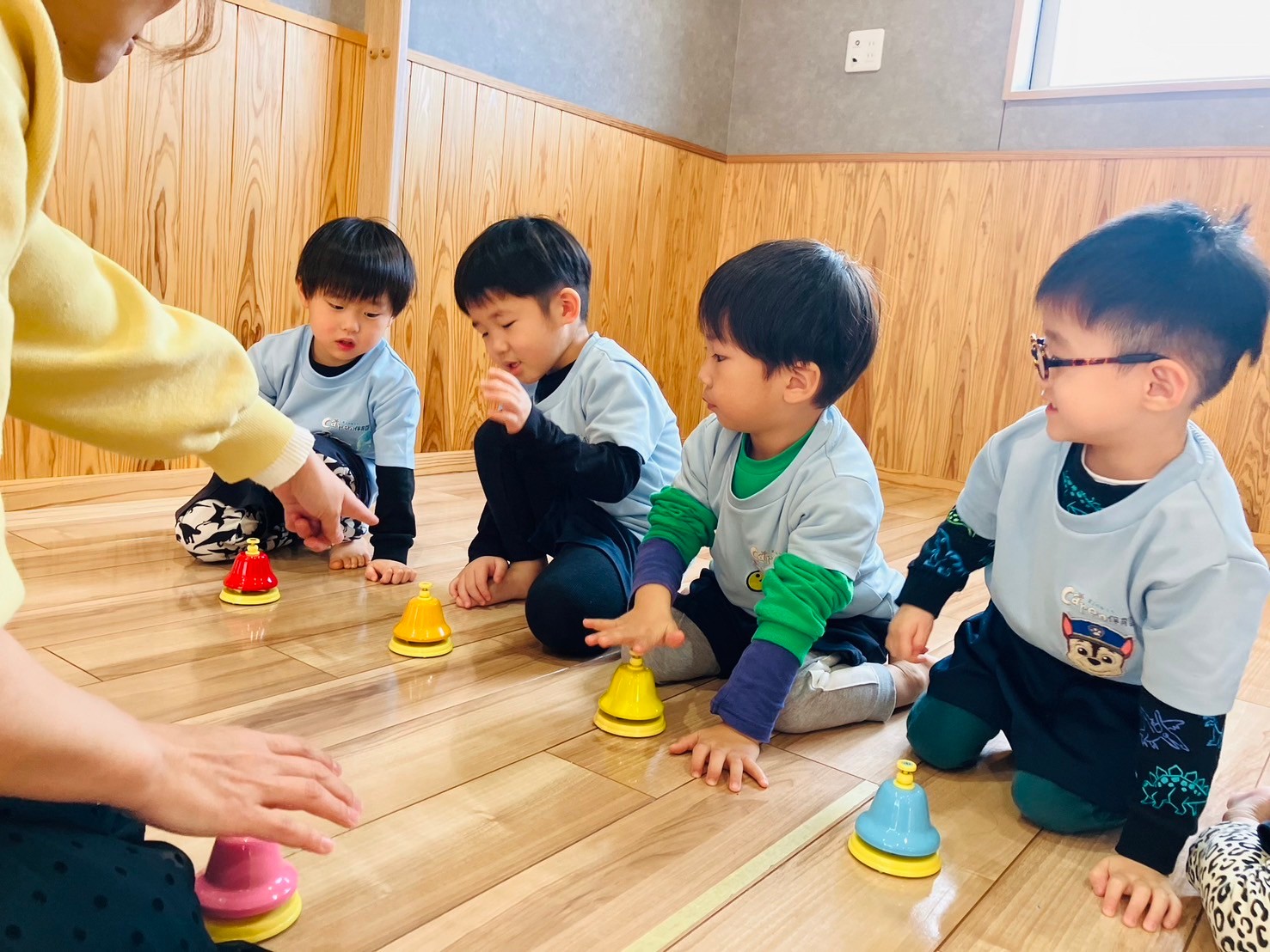 絵本を見たあとは鈴やハンドベルを使って演奏をしました🎶先生のお手本を見ながらキラキラと手を振り音を鳴らしたりと楽しく参加することができましたよ☺️