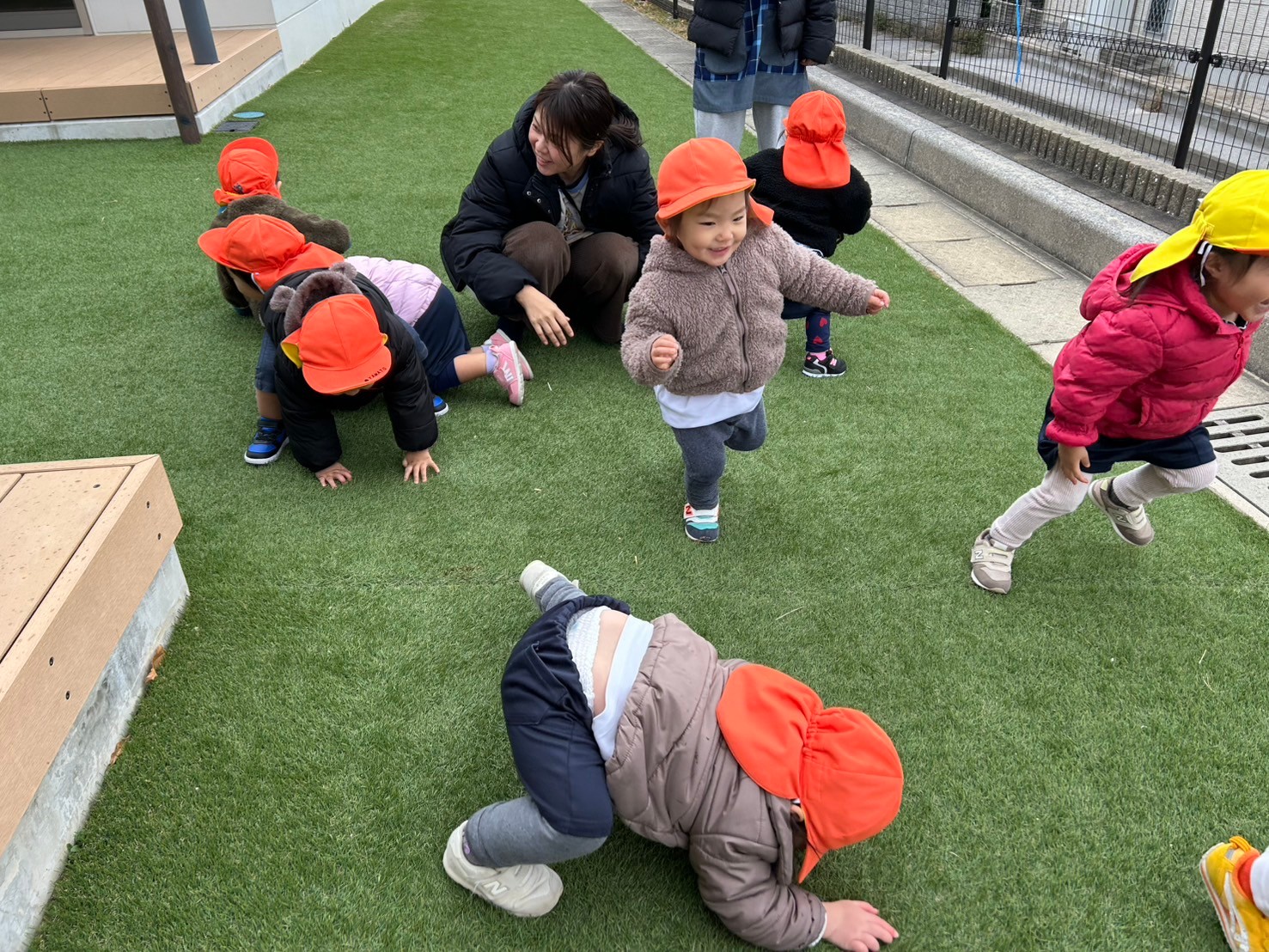 「だるまさんが」の絵本を読んで新しいお友だちも真剣に見ていましたよ🥰