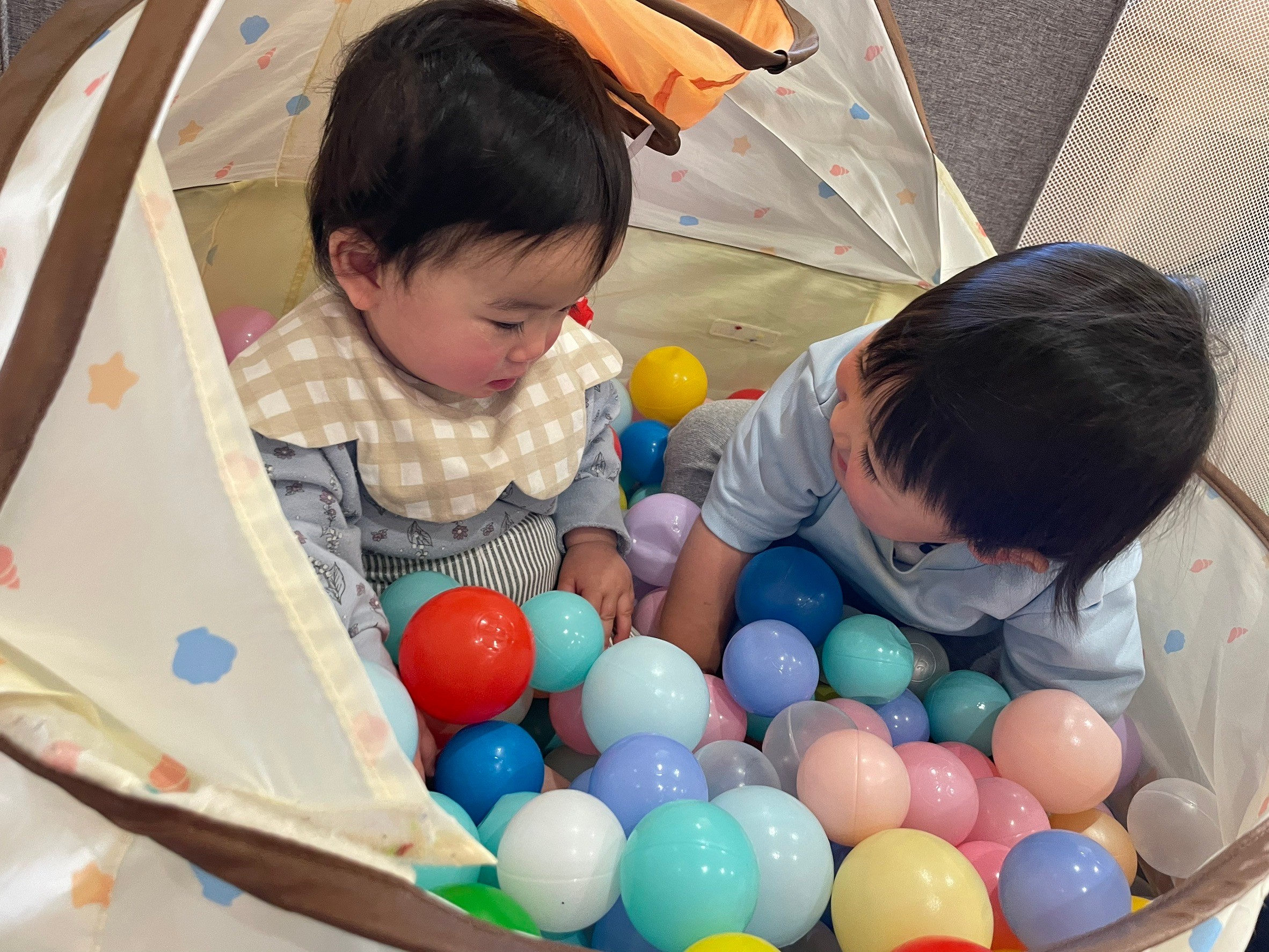 ボールプールの中で寝転がったり、アンパンマンの口にボールを入れたりと、ゆったりとした時間を過ごしました🥰