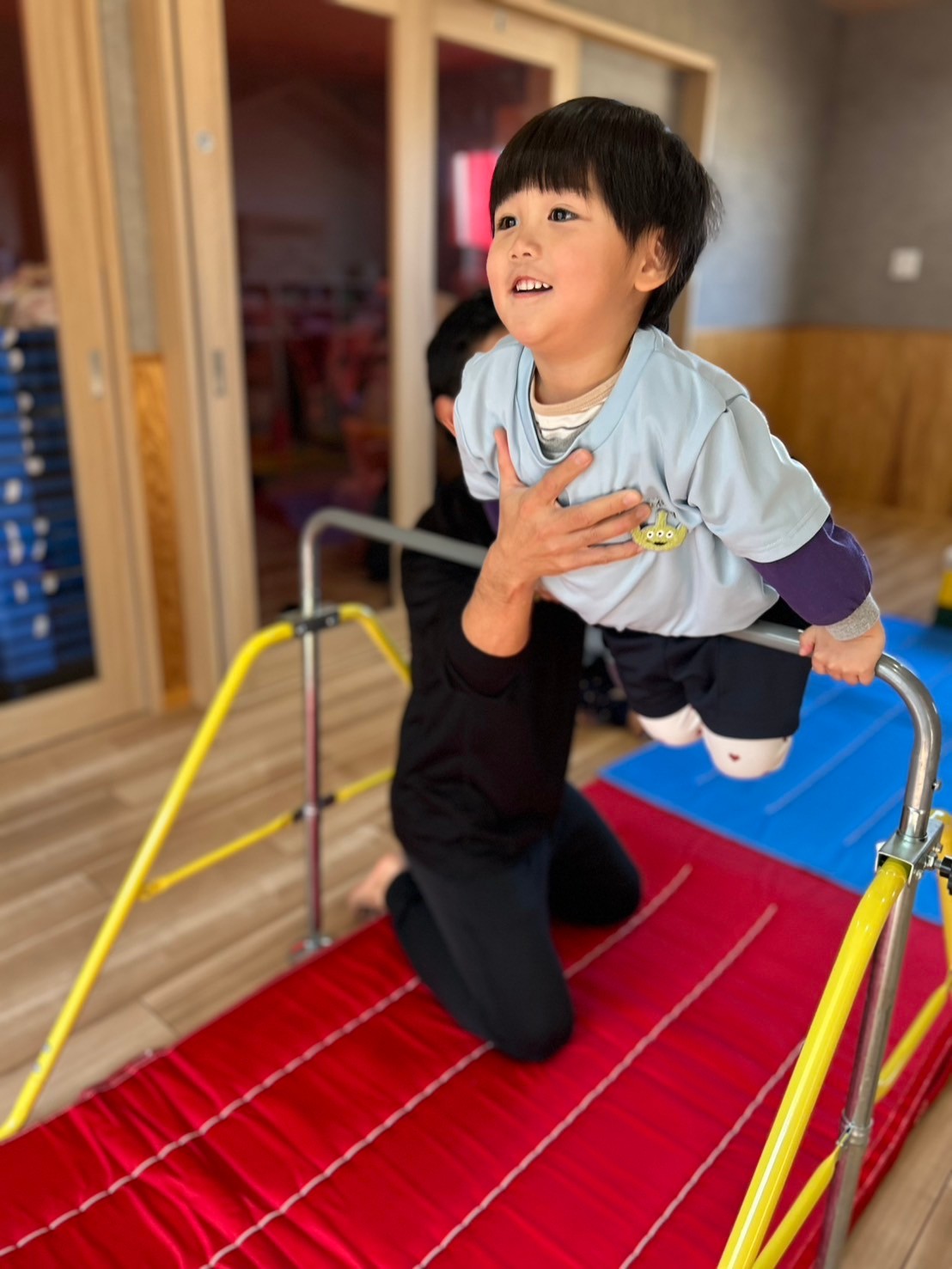 場所見知りするお友達も先生や周りのお友達が笑いながら体操する姿を見て、身振り手振りしながら楽しく参加する事ができましたよ💕