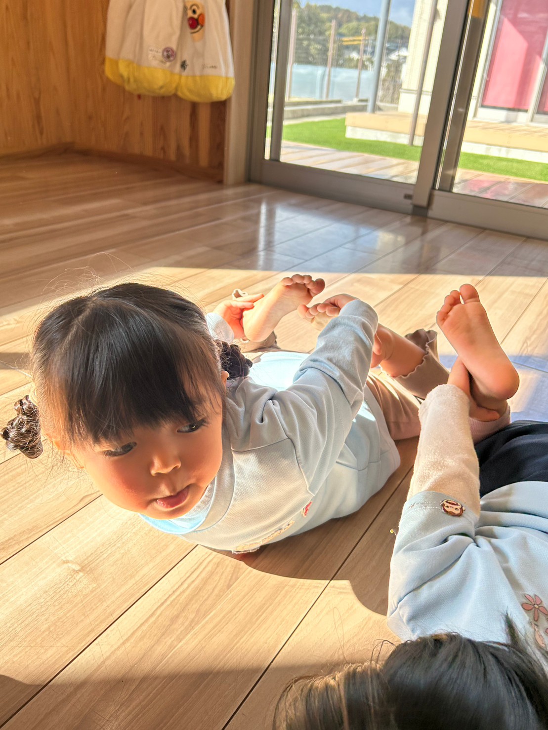 そのあとりす組と一緒にさくらんぼリズムをしました🎶音を聞いて動物の真似や歩く、スキップするなどたくさん体を動かし、他にもお部屋でハイハイレースなどもして楽しみました😆