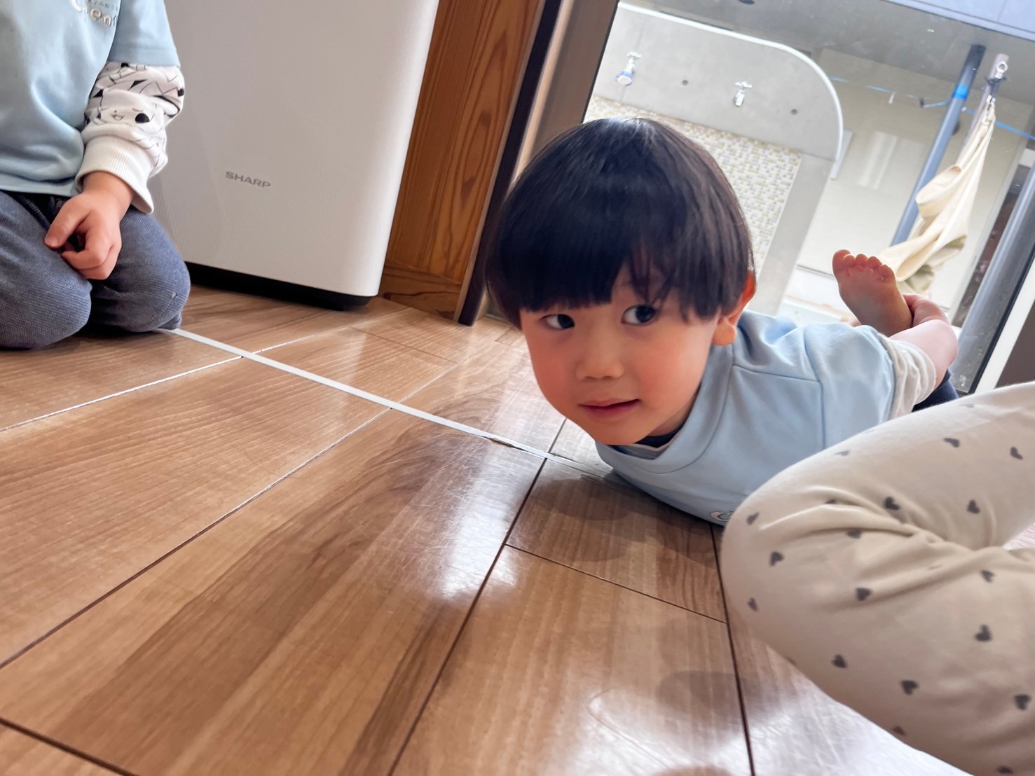 ♪さんぽの曲で、歩こう〜🎵歩こう〜🎵と歩いて行進したり、ハイハイで動いたりと活動前に身体を動かしてフレッシュしていきましたよ🥳
