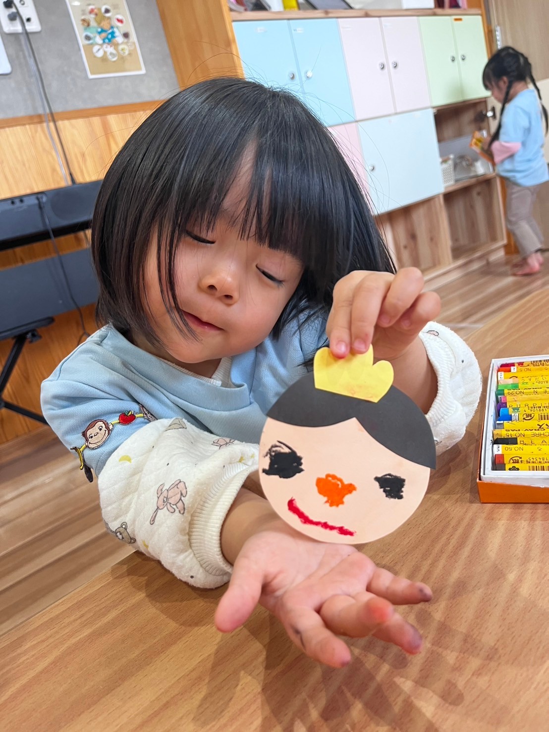 お雛様とお代理様のお顔を描きながら、「ピンクの髪の毛でもいいですか?」と言う質問も出ましたよ😁