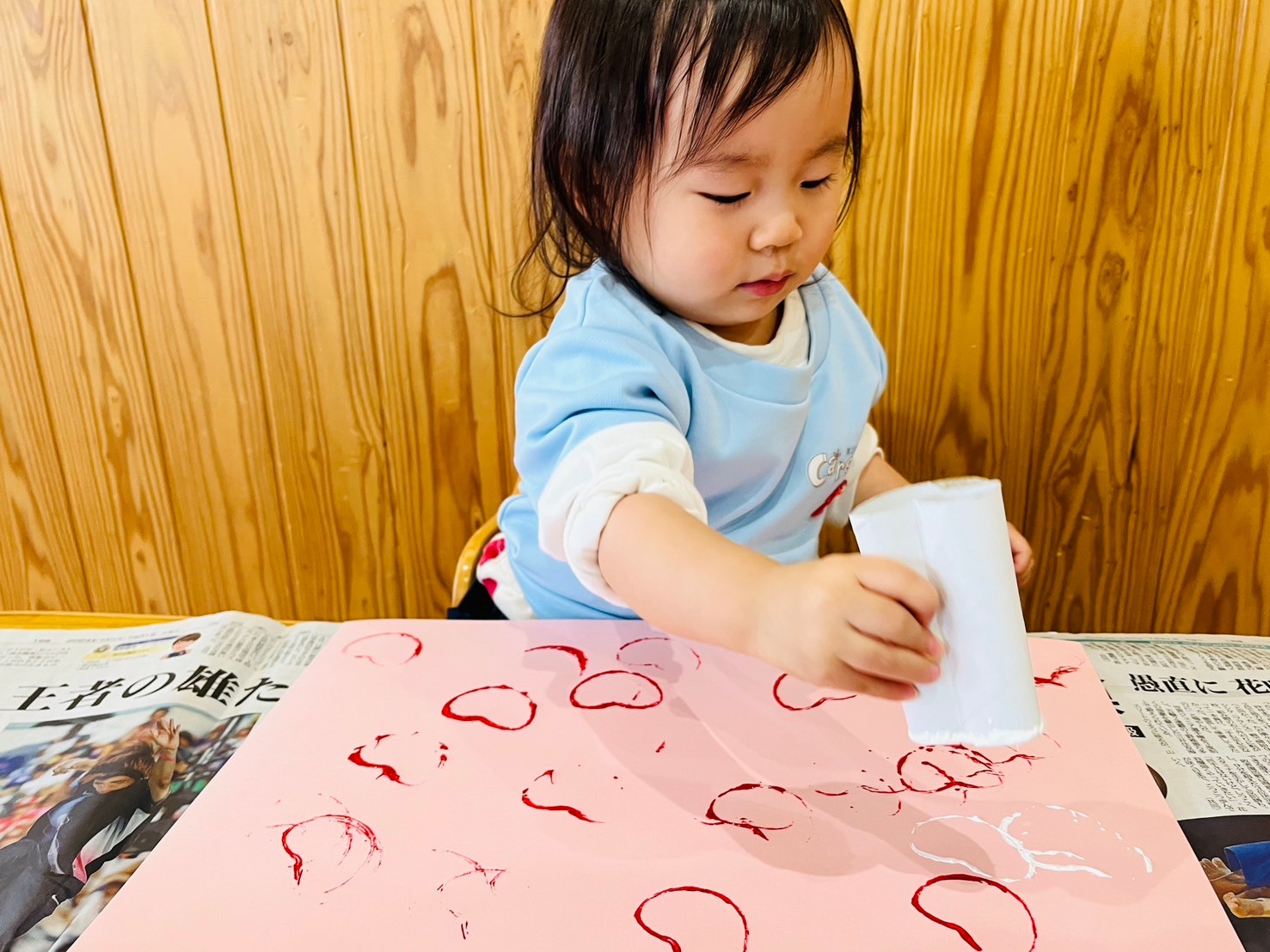 月製作では可愛いハートのスタンプをトントン🩷力の入れ方や連続押したりゆっくり押したりと個性がでた製作となりました😘粘土遊びではちぎったり丸めたり型取りをしたり🥰指先遊びが上手になってきているりす組さんです🐿✨