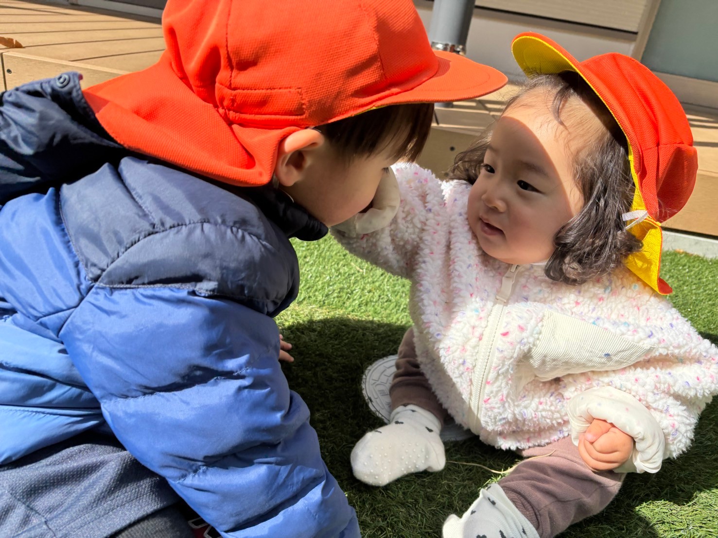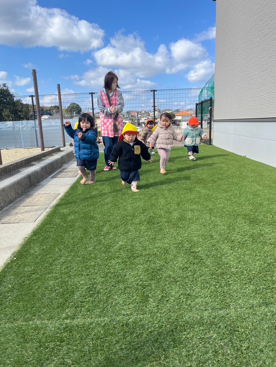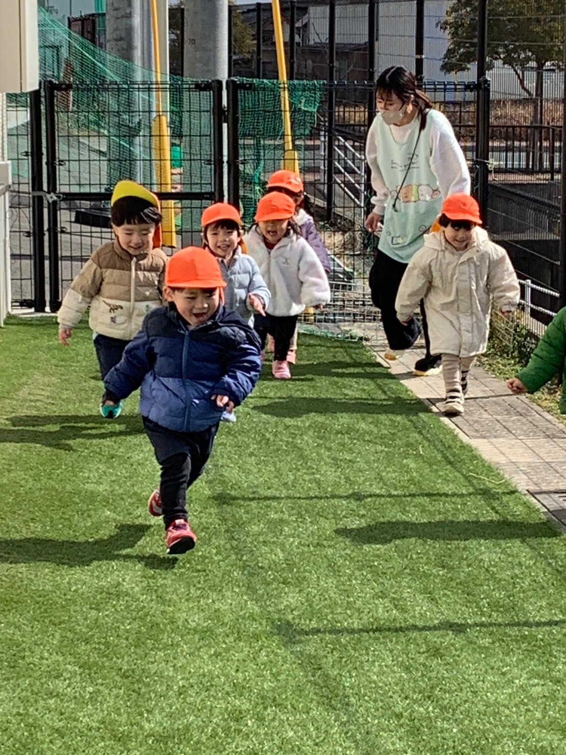 その後は園庭に出てお日様に当たりながらかけっこなどしました☀️お天気が良いけれど風が冷たい戸外でしたが、北風に負けない元気なぱんだ組のお友だちでした💕うさぎ、こあら、きりん組