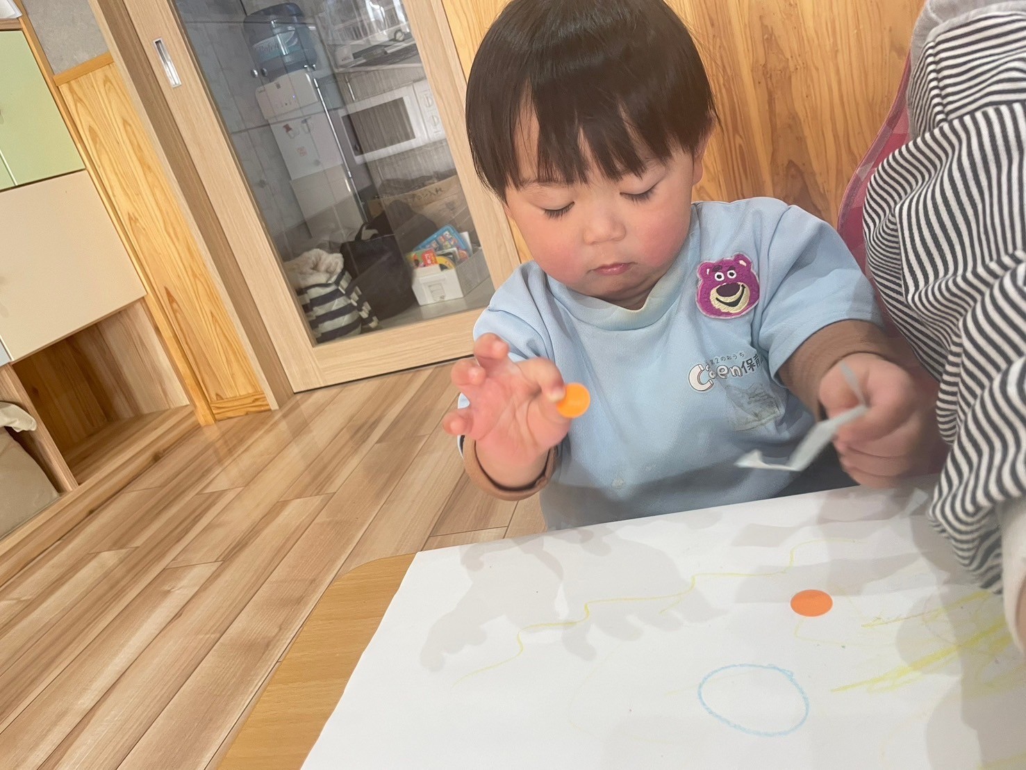 今日は机上遊びをしていきました🤗クレヨン🖍️でお絵描きしたりシールを、貼っていきましたよ♡♡