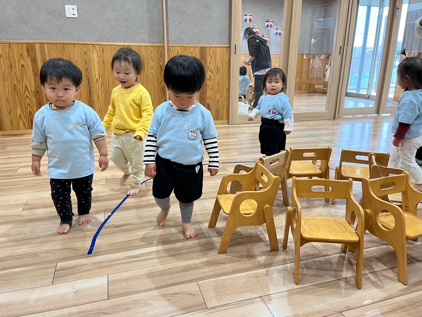 その後椅子取りゲームをしました🪑ルールを理解しているからこそ涙が出ちゃうお友達も増えてきました🤭マイペースに「おっあったー!」とのんびり座るお友達がいたり、音が止まると俊敏に椅子を取りに行くお友達がいたり個性が出ていました👍🏻