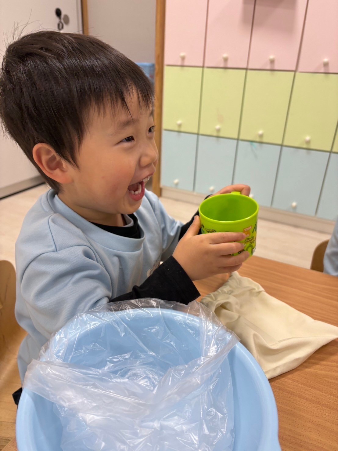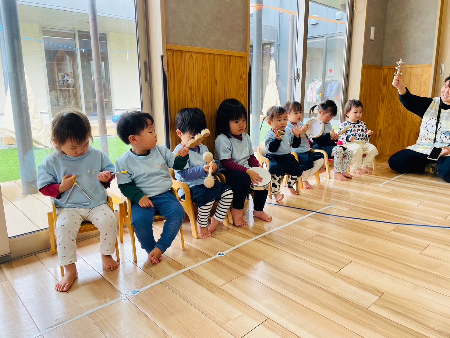 くまさんに捕まらないようににこにこで逃げて簡単な鬼ごっこをみんなで楽しむことができました😉✌️それから楽器遊びもしました🪇♪おもちゃのチャチャチャで演奏😆したり行進したりたくさ〜ん楽器となかよしになりました✨その後は粘土遊びをしました😄アンパンマンやアイス、ヘビ🐍さんなどなど1人ひとりの発想も面白くいっぱい作って遊びましたよ💖いろいろなお部屋遊びを楽しんで過ごしました✌️😆ぱんだ🐼組