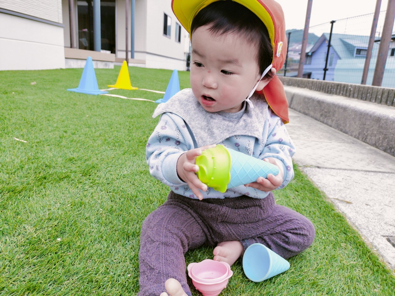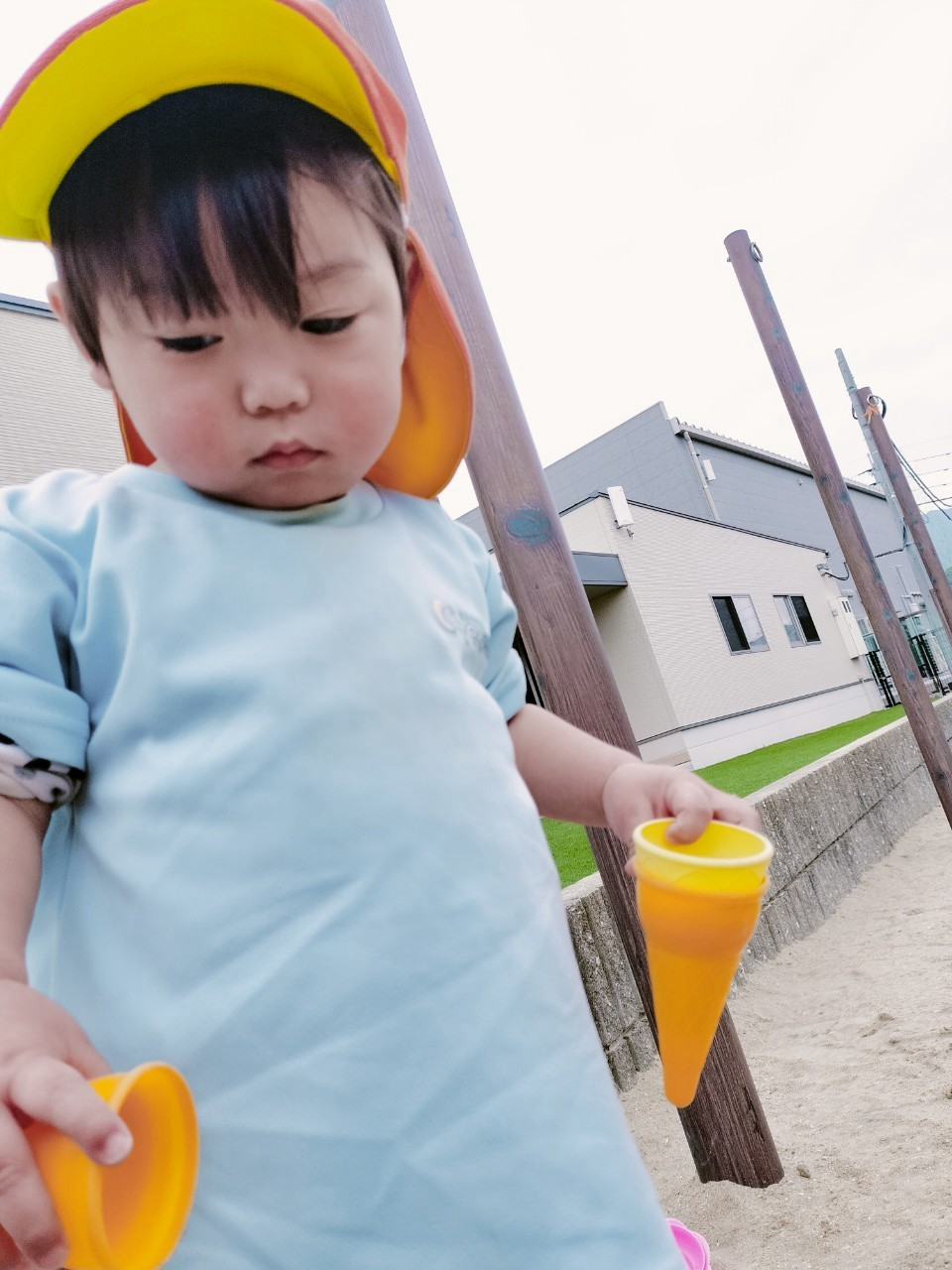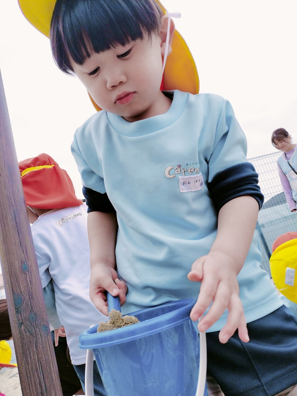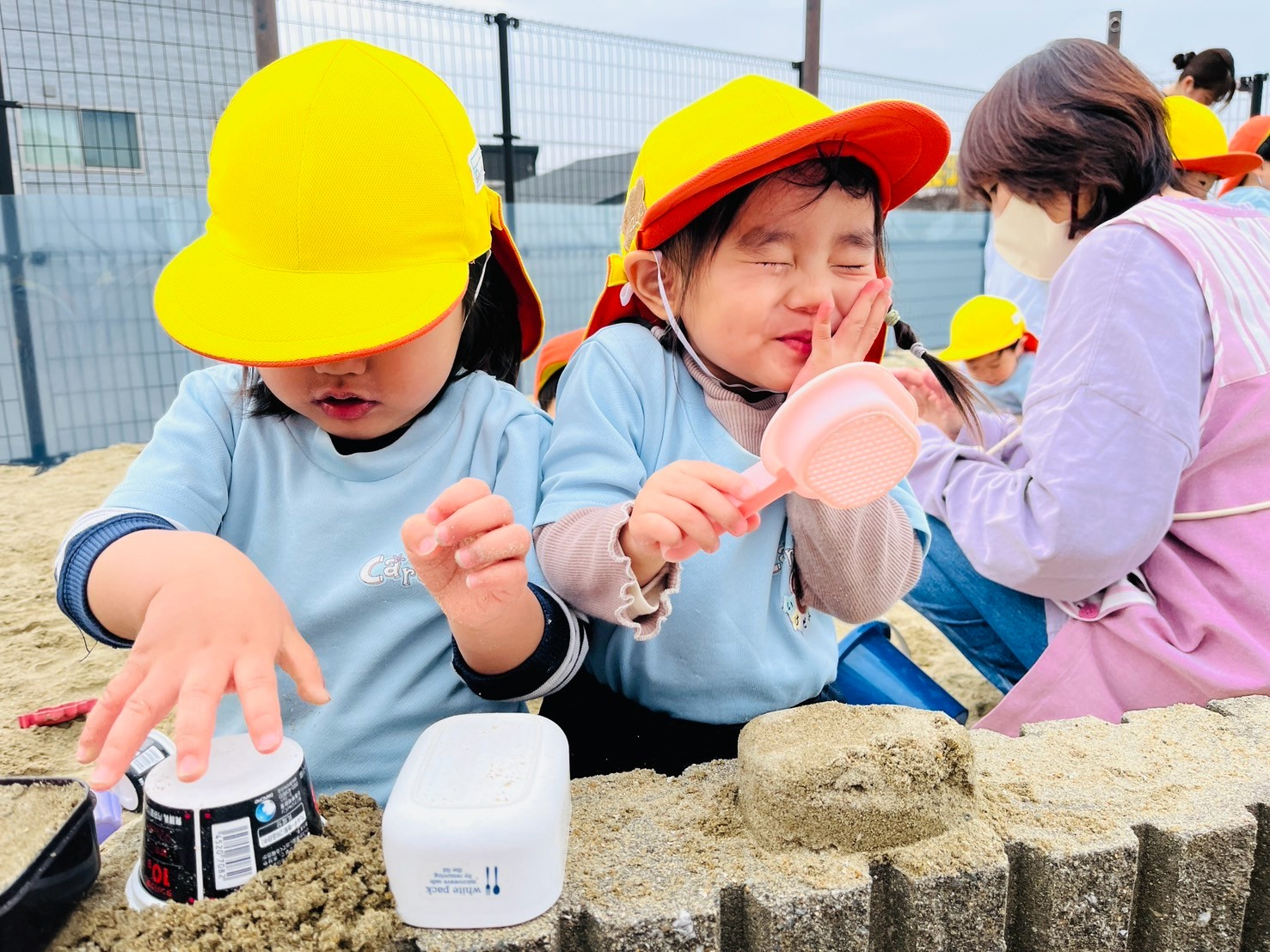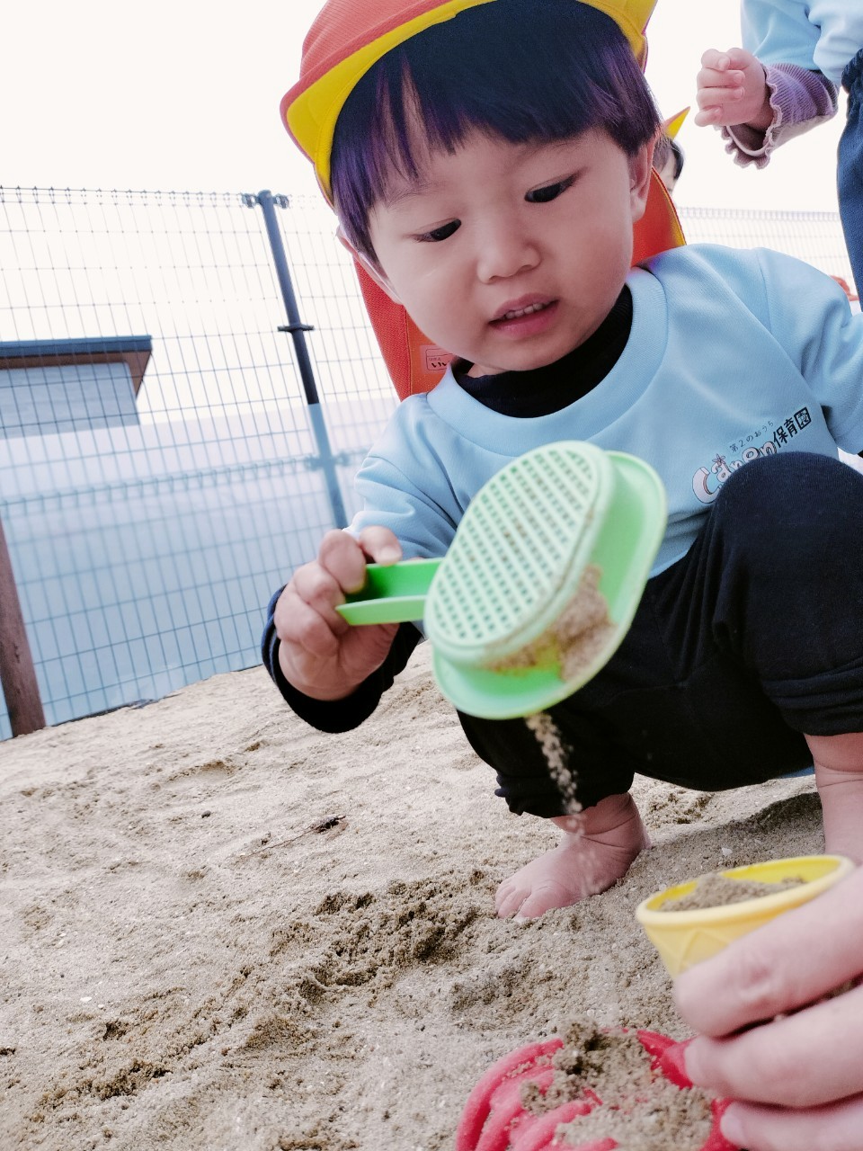 スコップで砂を集めてカップに入れたり、アイスを作って先生達に渡してくれましたよ💕