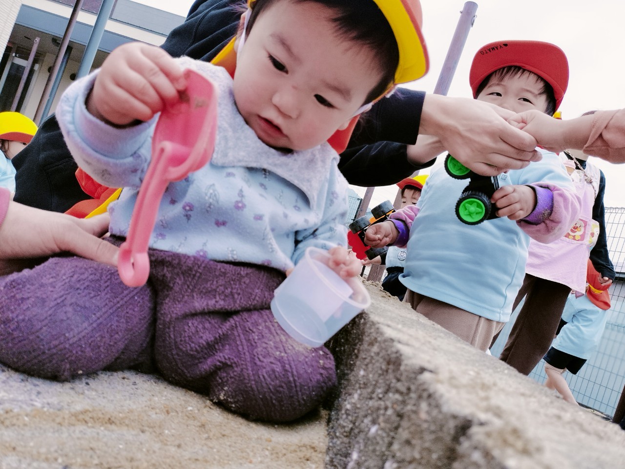 その後、園庭で砂遊びやかけっこをして遊びました💗