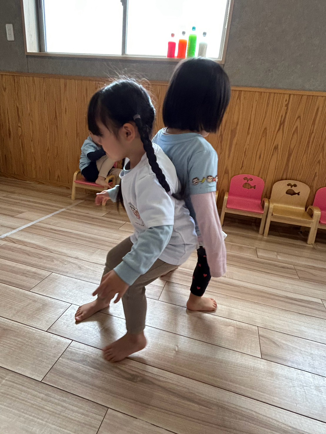 お友達と遊ぶことが大好きなりす組さん✨一緒にジャンプしよう!と誘ったり、お店屋さんごっこをして一緒に遊んだり、会話を楽しみながら遊んでいましたよ🙌🥳ぱんだ🐼組
