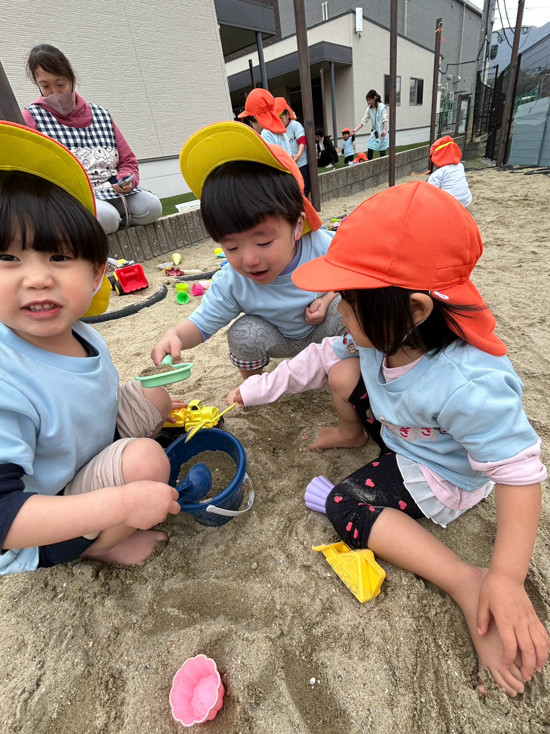 その後はりす🐿️組さんやひよこ🐣組さんと一緒に砂場で遊びました🪣