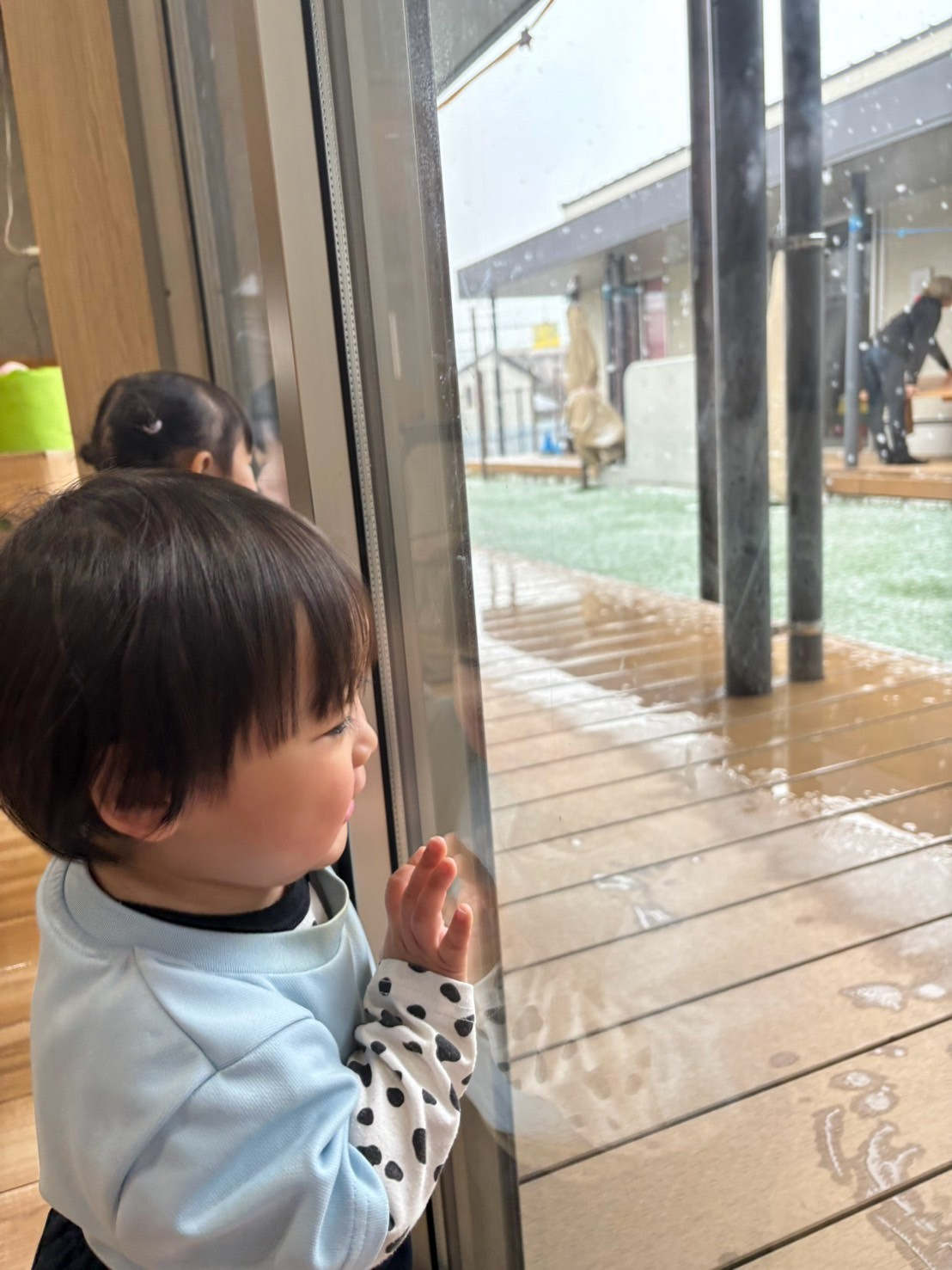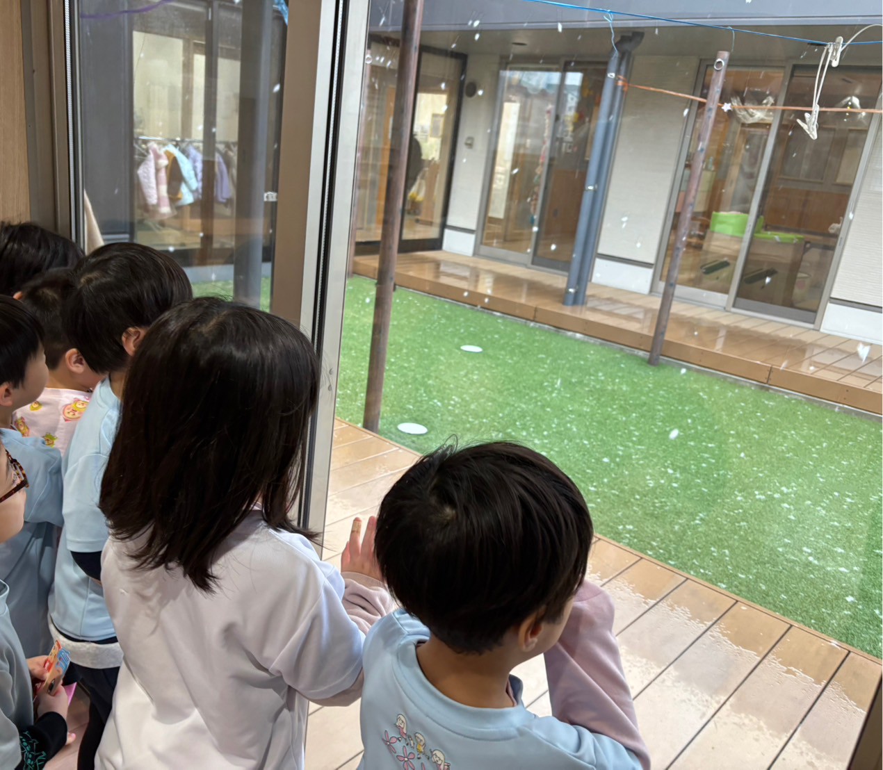 今日は朝から雪が降ってびっくりの子どもたち👀