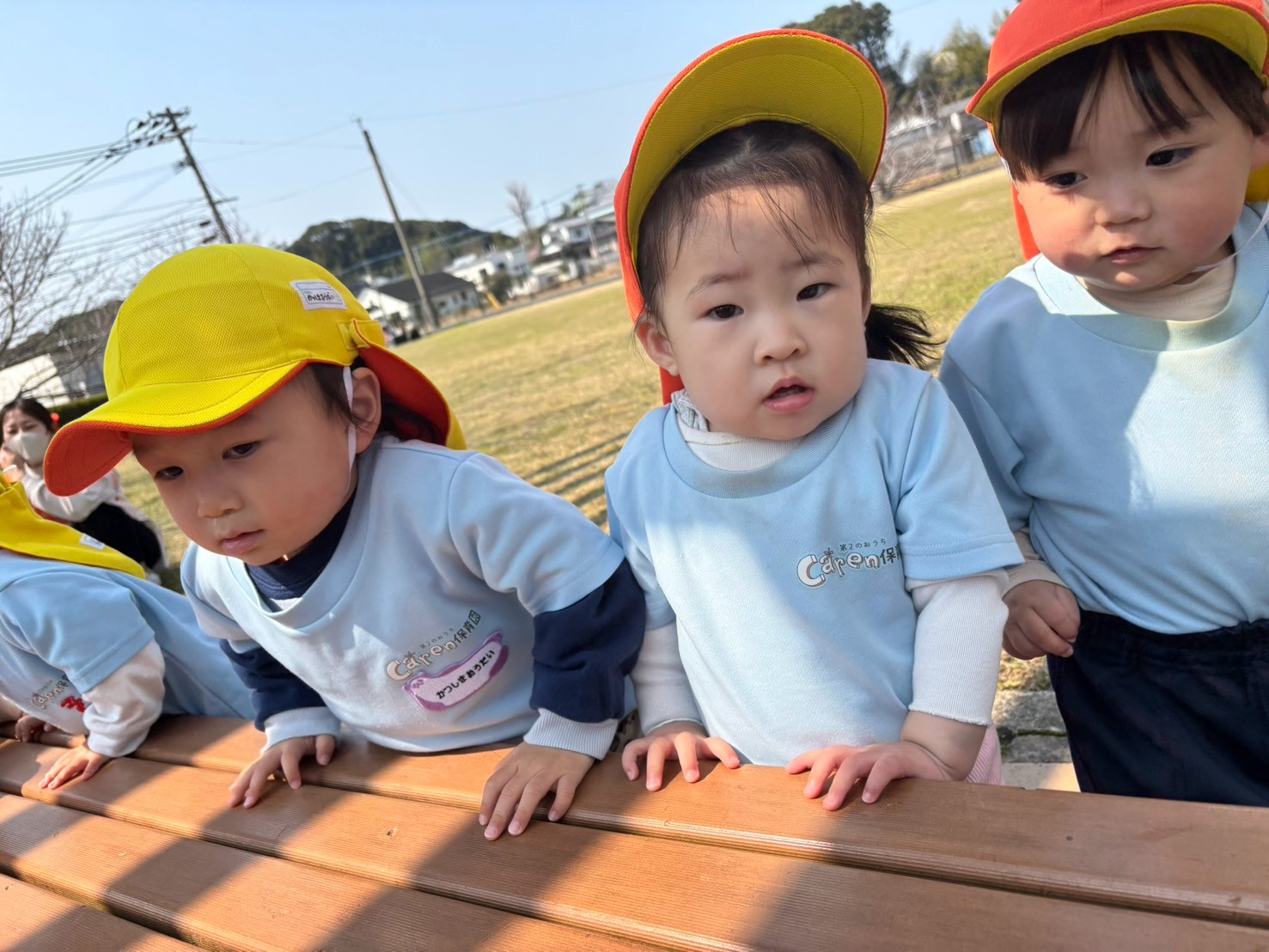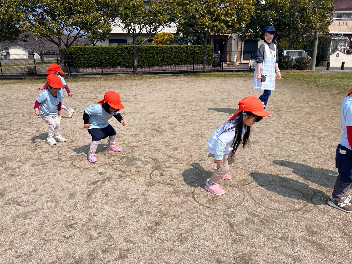 天気が良かったので、準備をしてふれあい公園に行きました🎶靴下と靴を履くスピードがスムーズで、園児同士手を繋いで歩くのも上手でした💕道中ではみんなでおしゃべりしたり、桜の蕾を見ながら歩きました🌸公園では滑り台やスプリング遊具ばかりで遊ばず、保育者やお友達同士で鬼ごっこやかくれんぼを楽しむ姿も見られました😆🩷うさぎ、こあら、きりん組