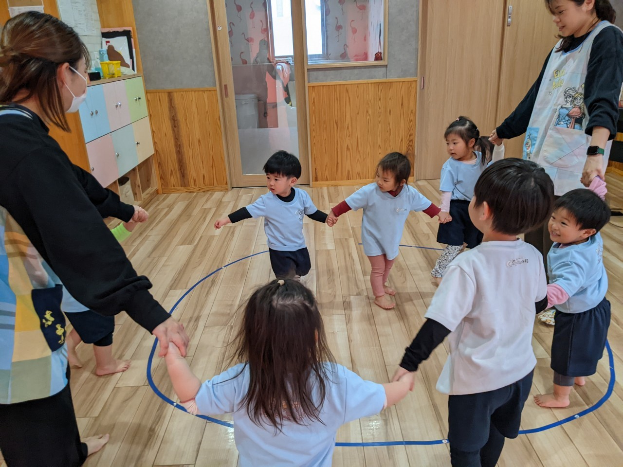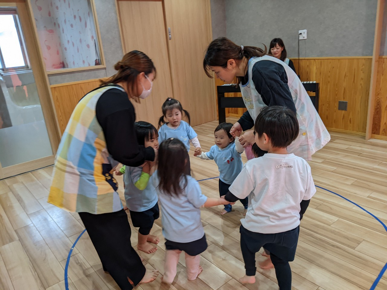 今日は移行保育でぱんだ組で過ごしたり、きりん組さんが遊びに来てくれて、一緒にさくらんぼリズムをしました✨