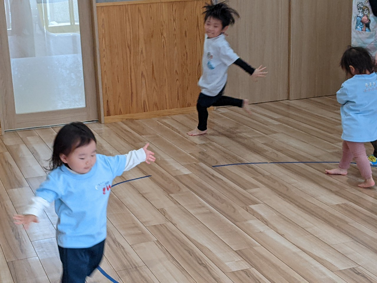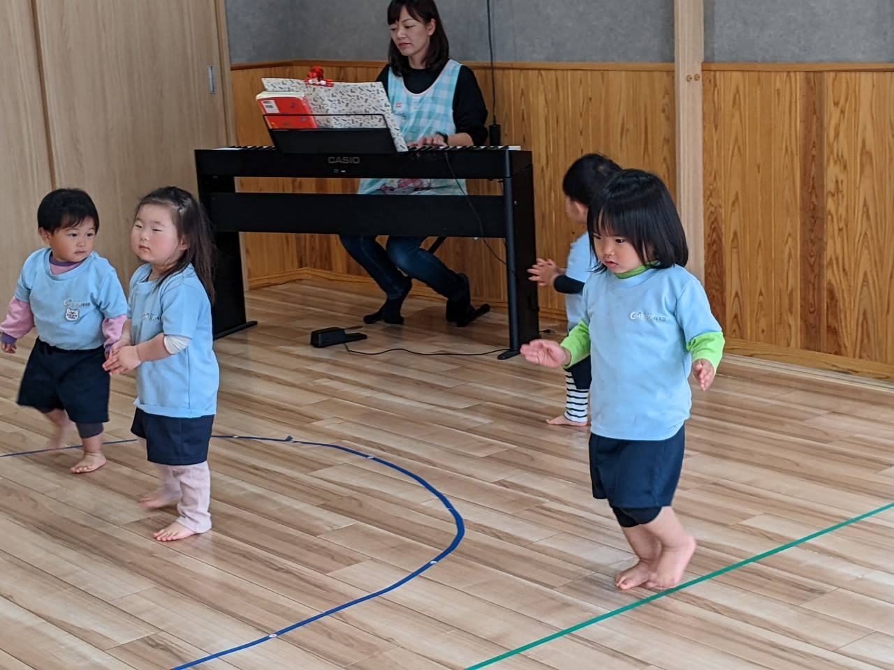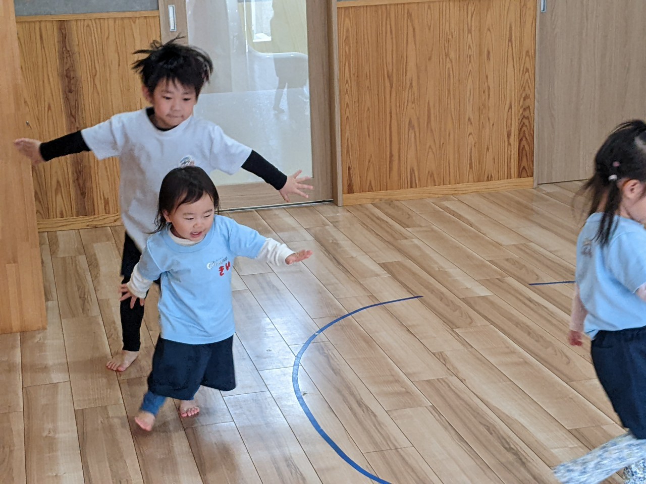 ギャロップや汽車など、新しい内容にも保育者のお手本をしっかり見て、積極的に参加していましたよ☺️