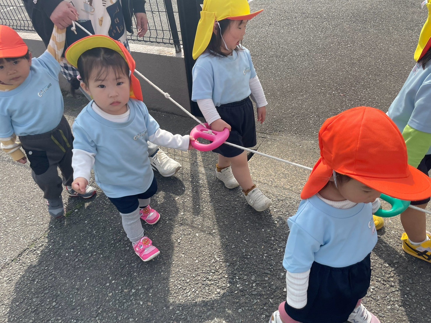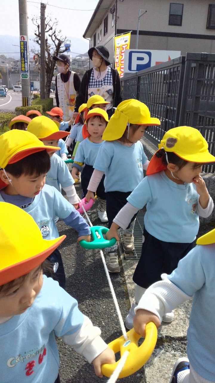 今日はくりえいとふれあい公園へお散歩に行きました🌞途中でトラック🚛や車🚗に「ばいば〜い」と手を振ったりショベルカーを見つけて大喜びしていました😆桜並木の中で桜の蕾🌸や蝶々を発見して春の自然を感じることができましたよ💕公園では高い滑り台やスウィング遊具などどんどんと挑戦してパワー全開の子ども達でした✌️😆