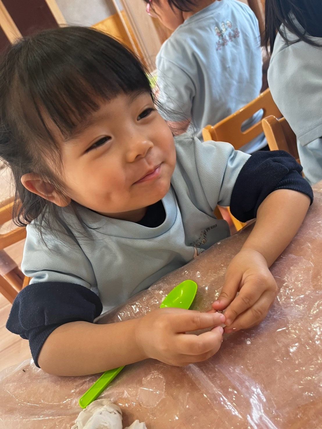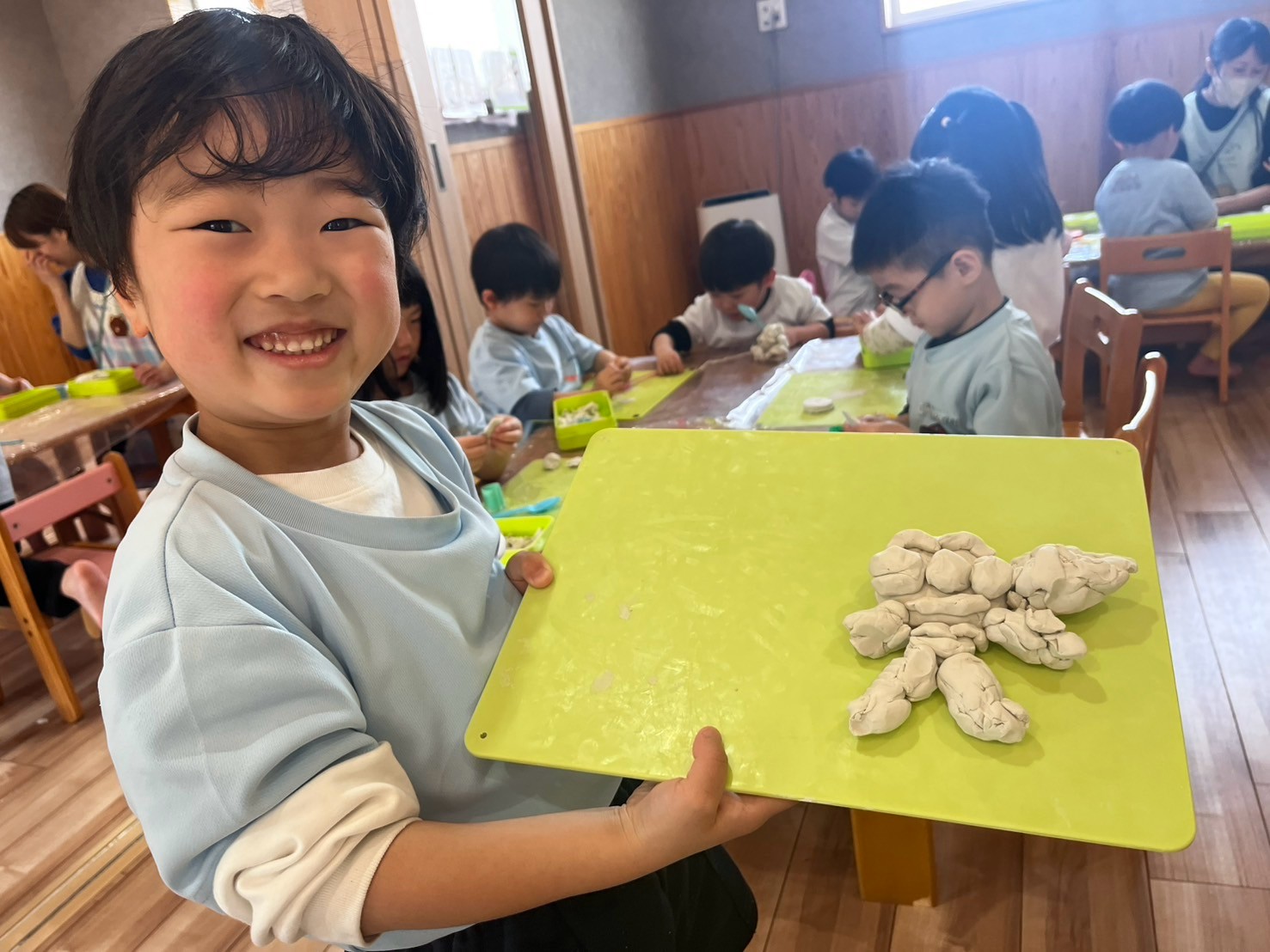 今日はみんなで粘土遊びをしましたよ🥰さすが以上児さん✨好きなキャラクターなど想像しながら立体に作ってました❣️ぱんだ組のお友達もスプーンや型抜きなど使って遊びました🫶🏻