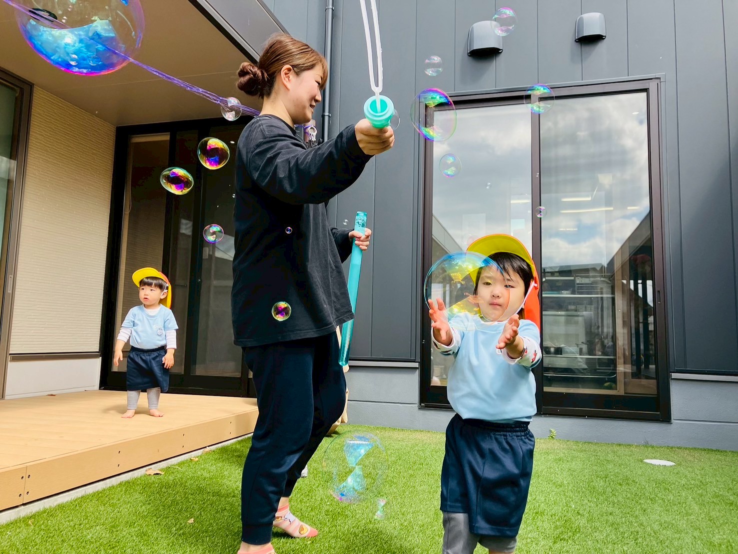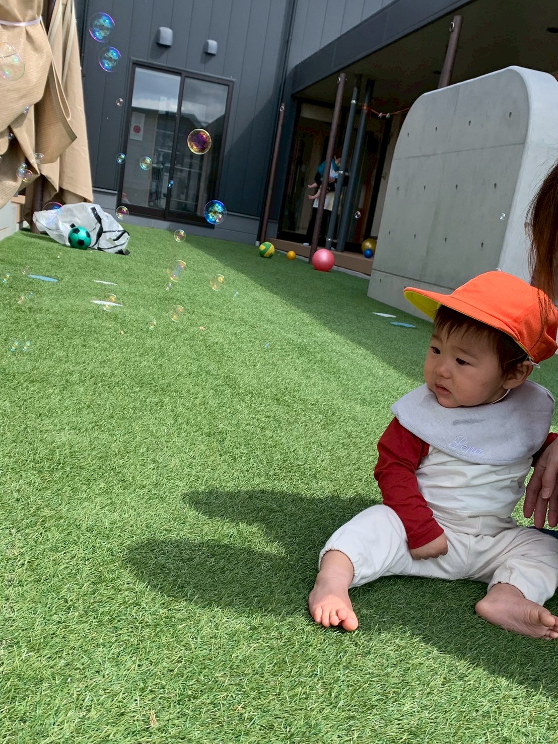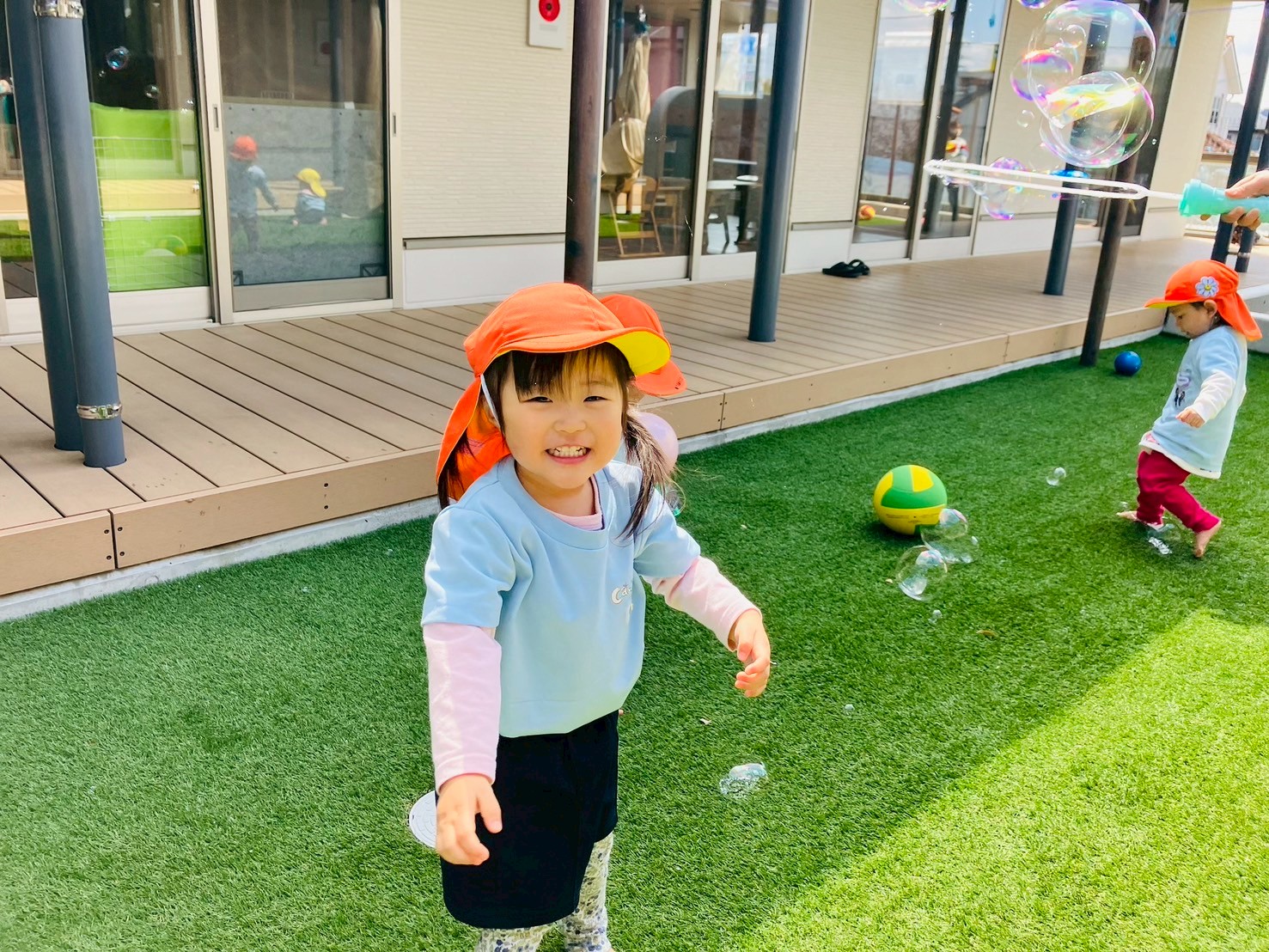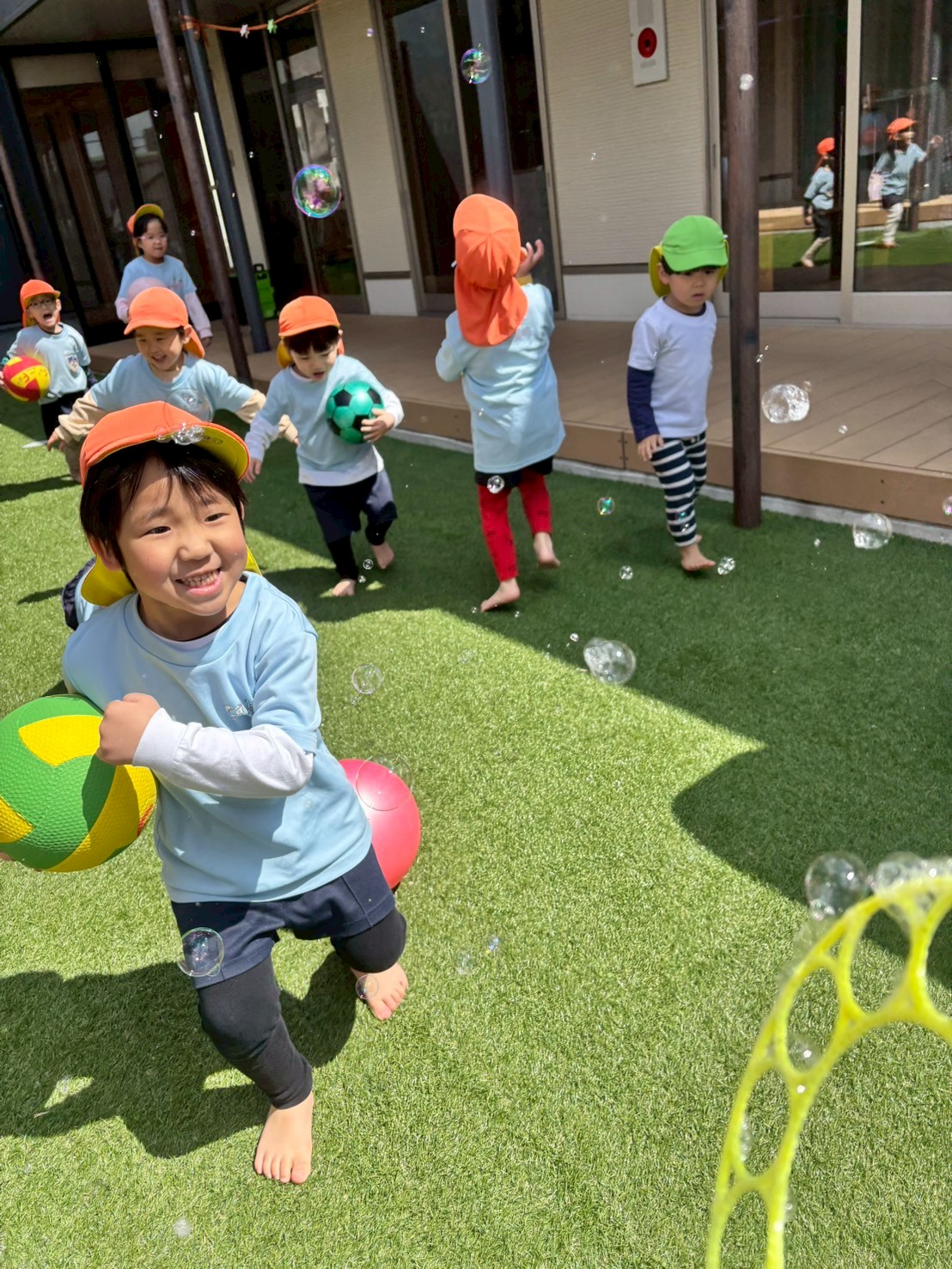 シャボン玉🫧やボール遊びを🏀楽しんだりたくさん出てくるシャボン玉に大喜びで手を伸ばして捕まえようとしているお友だち達もいましたよ🥰