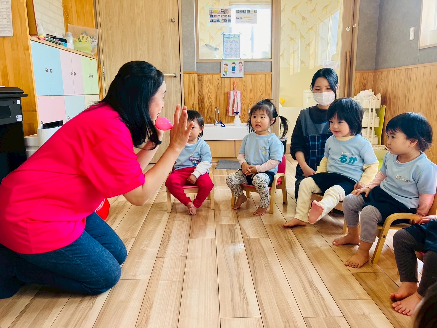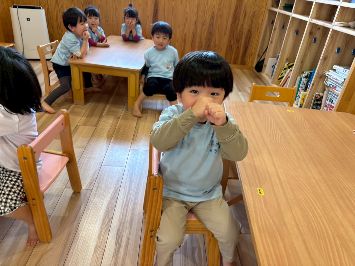 みんな椅子に座って朝の会に参加する事ができました😊