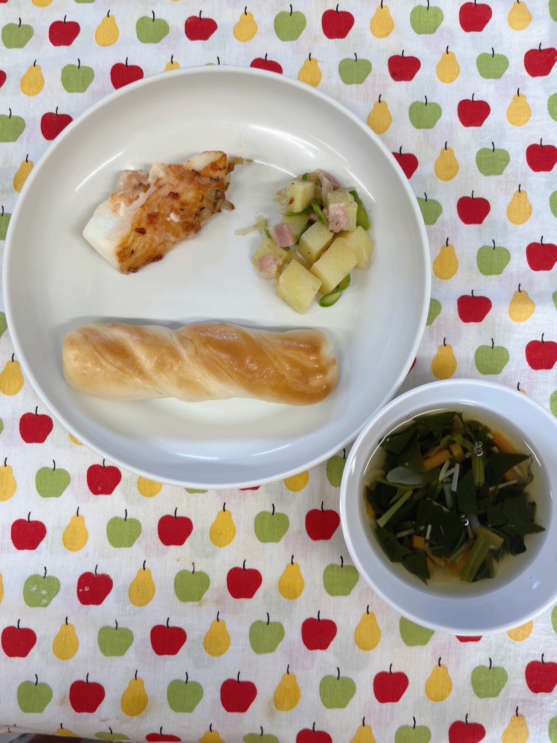初めての給食では、自分でパンを掴み美味しそうに食べていました❤️