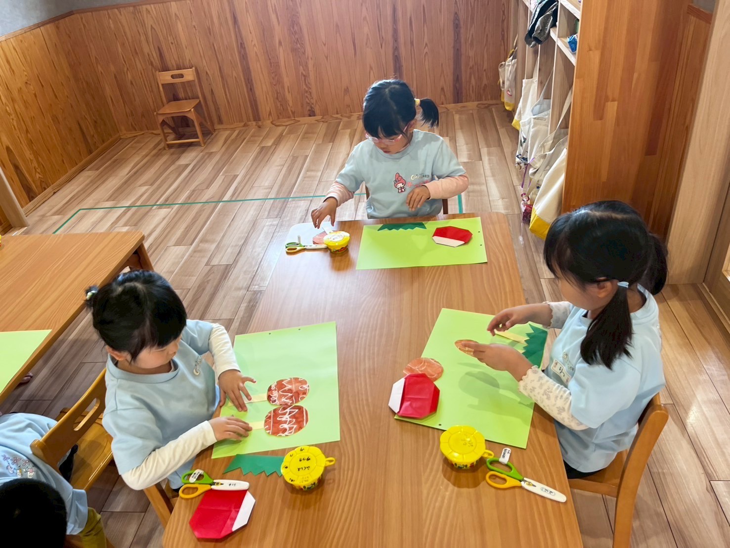 その後、部屋に戻り月製作をしています♪きりん組は折り紙でてんとう虫を折ったり続きを完成させていきました🎶