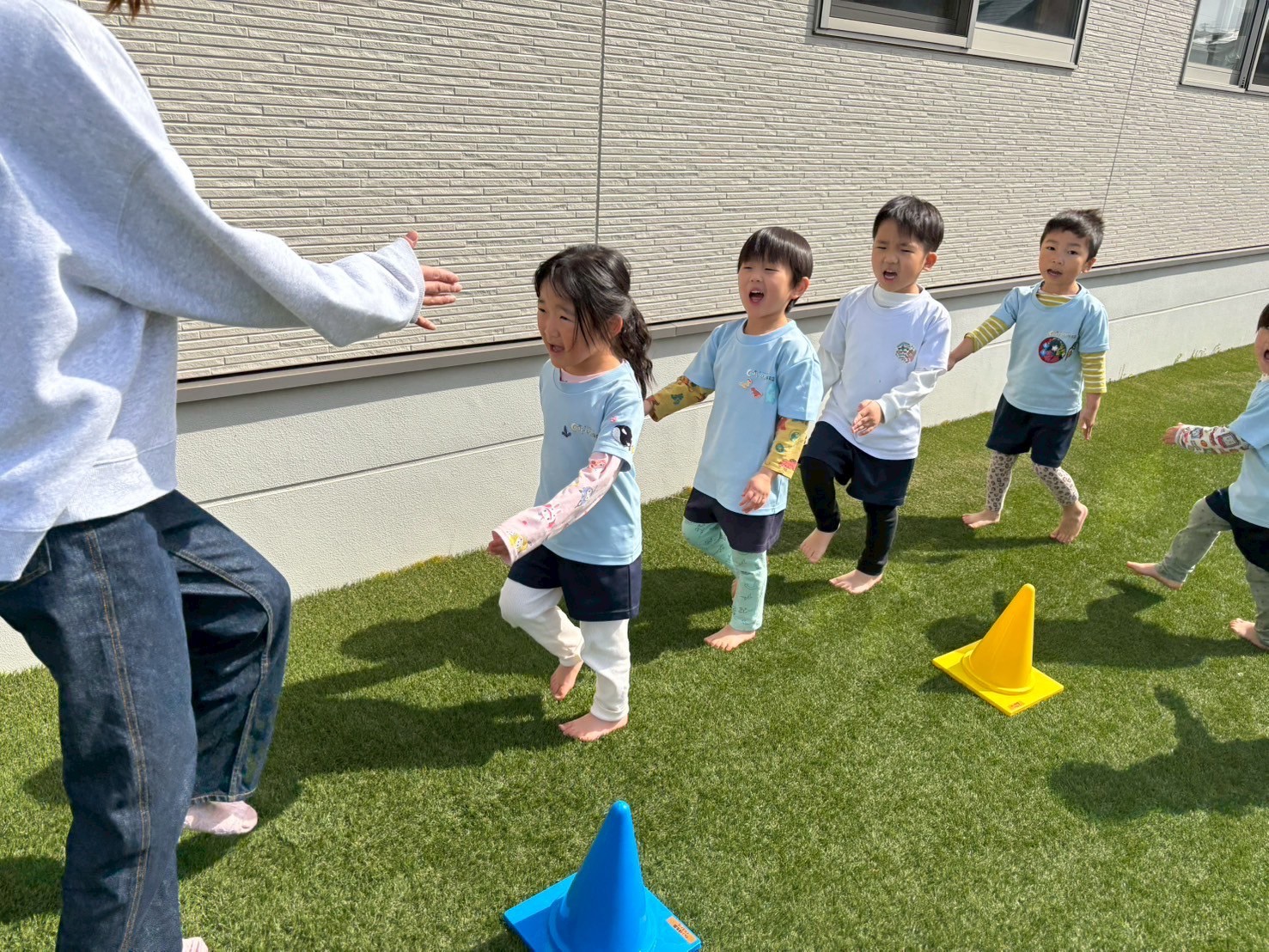 今日は朝から体操をテラスでしていき、そのまま行進の練習をしていきました✨笛のピッピッ