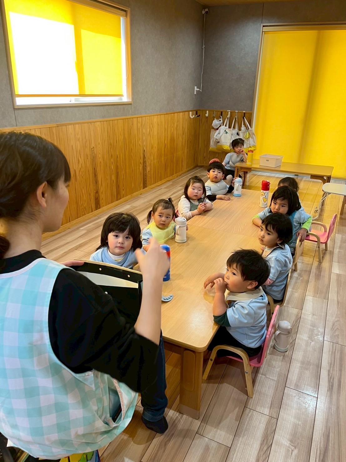 りす組さんの番の時は待つことも知り、りす組さんを見守りながら少しお兄さんお姉さんの気分も味わったぱんだ組さん☺️今後もピアノに合わせて、子ども達の様子を見ながら、発達を促すさくらんぼリズムを行っていきたいと思います☺️