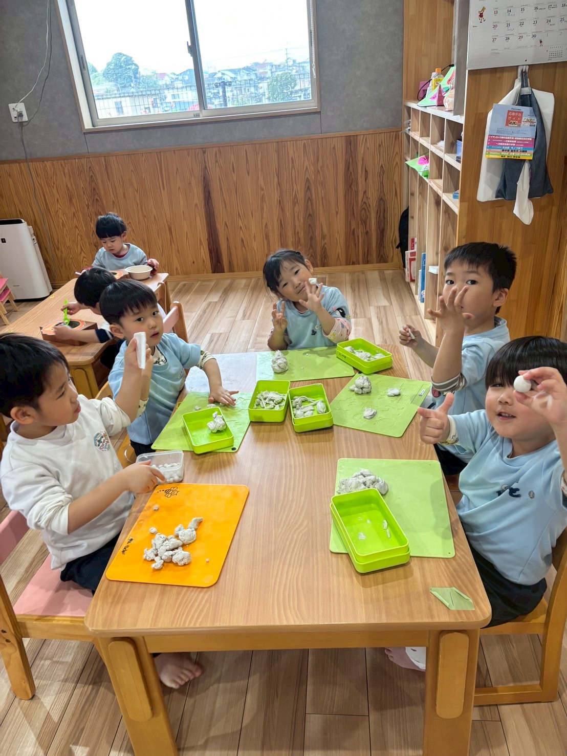 こあらさんは月製作の続きでのり貼りや、粘土をしました☺️