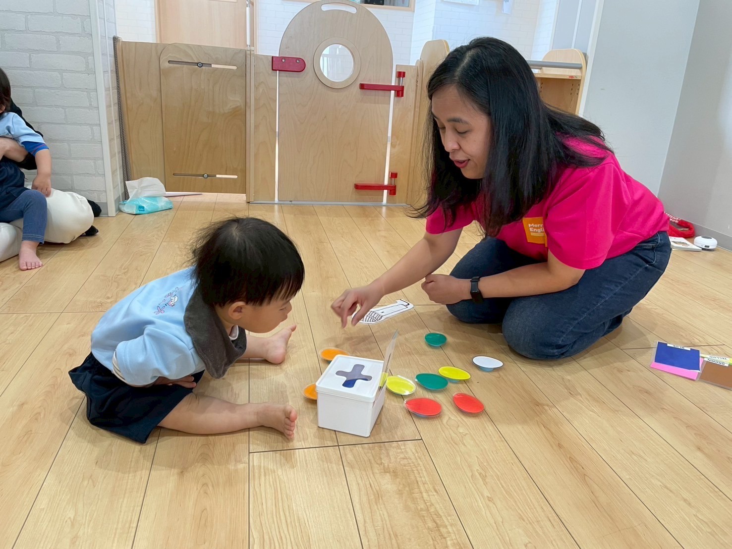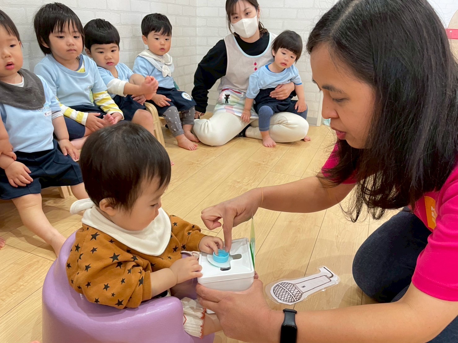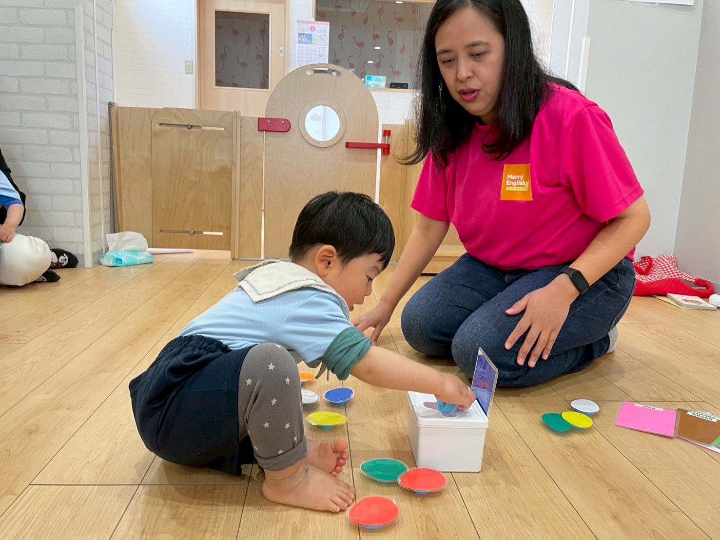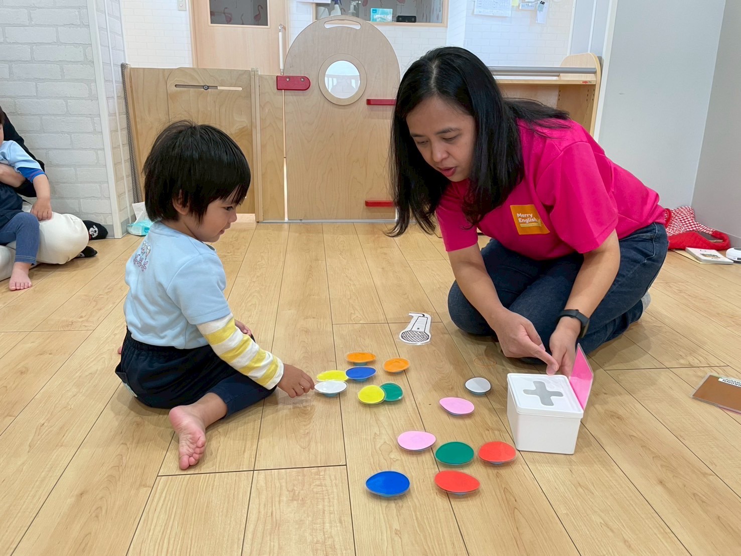 イースター🥚🐣🥚に ちなんで、出てくるカードの色をみて、その色と同じ色の卵を見つけるゲームをしました💚💛💙❤️たくさんの色を見て、見分けることができました👏💓