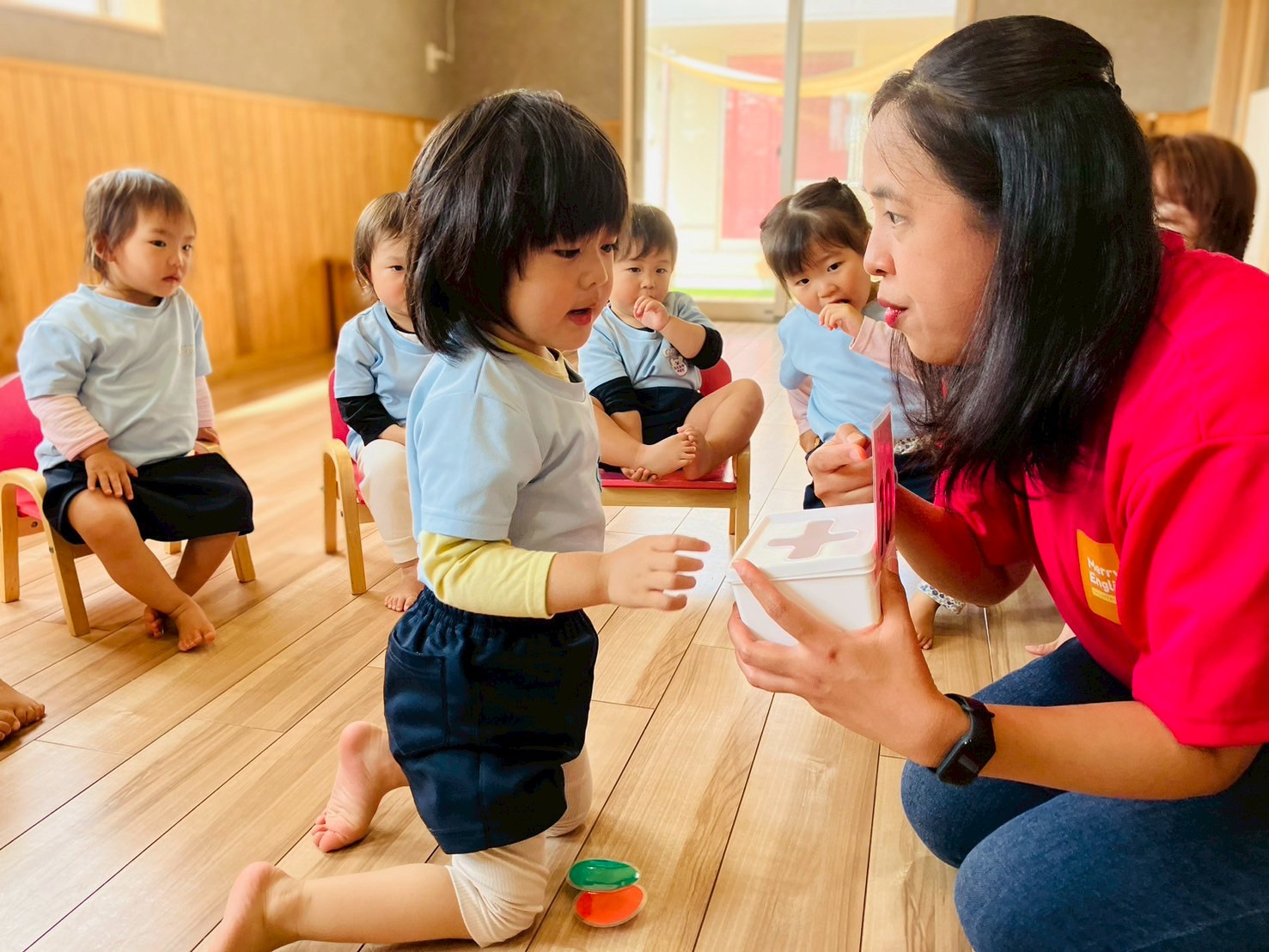 先生と「ピンク」「レッド」と復唱する子ども達でした🥰