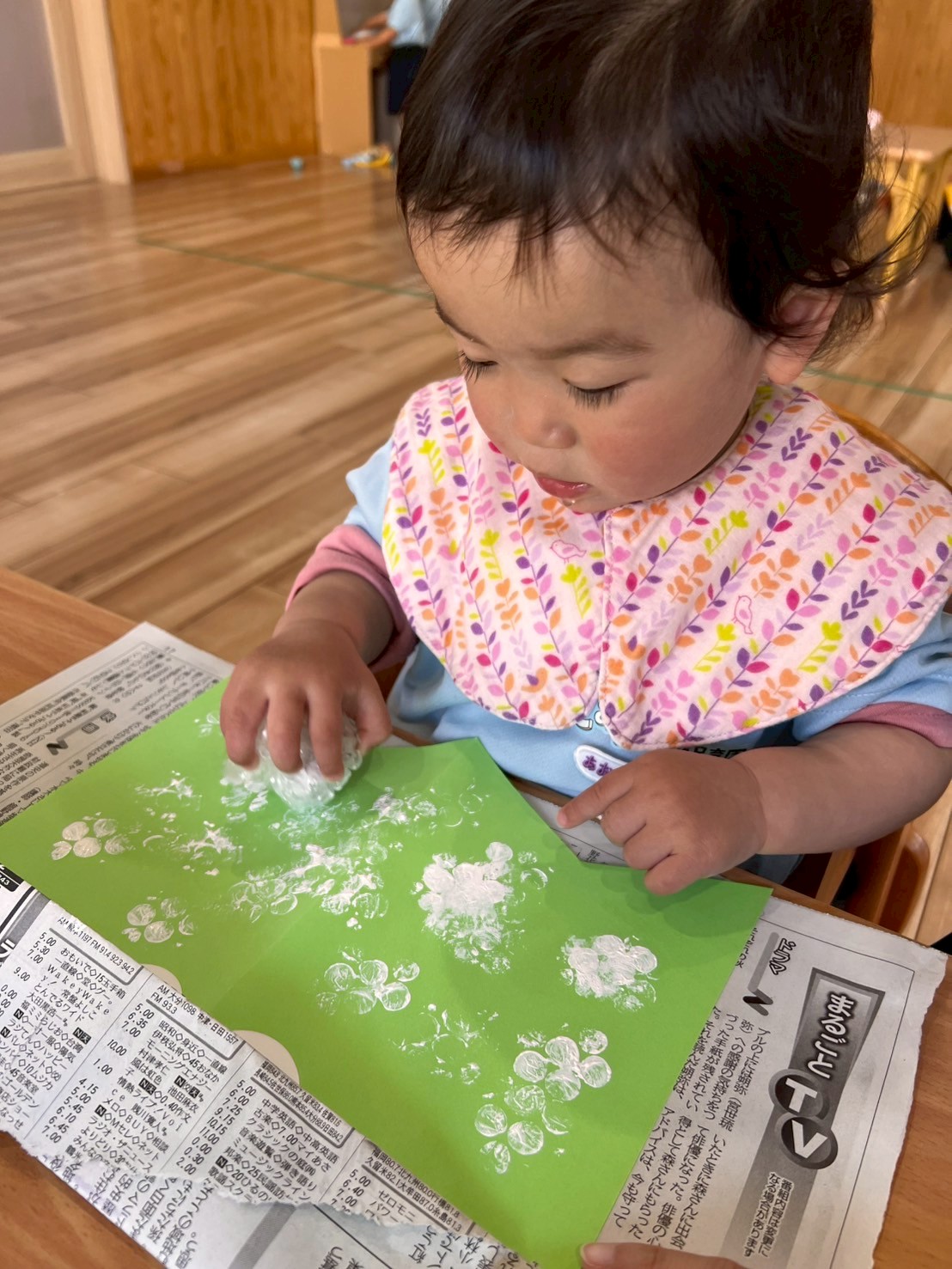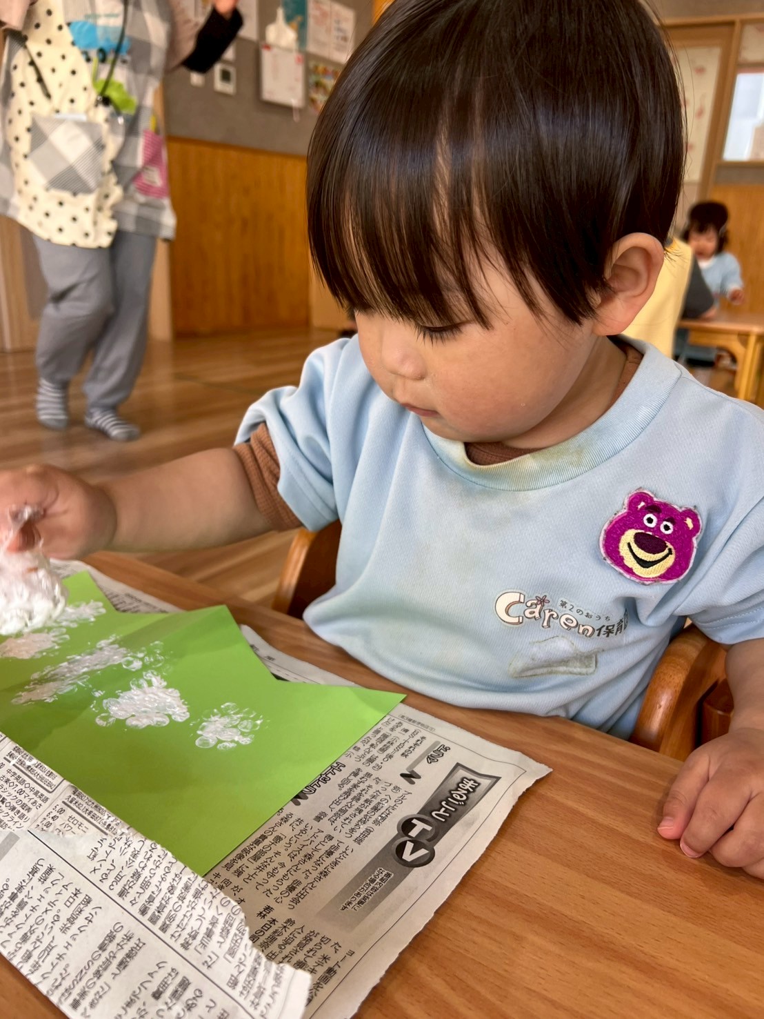 鯉のぼりにプチプチを使って色をのせました🤍 最初は持たなかった子も先生と一緒にしていくうちにぽんぽんと上手にすることが出来ました🙌かわいい鯉のぼりが園庭で泳ぐ姿が今から楽しみです🥰