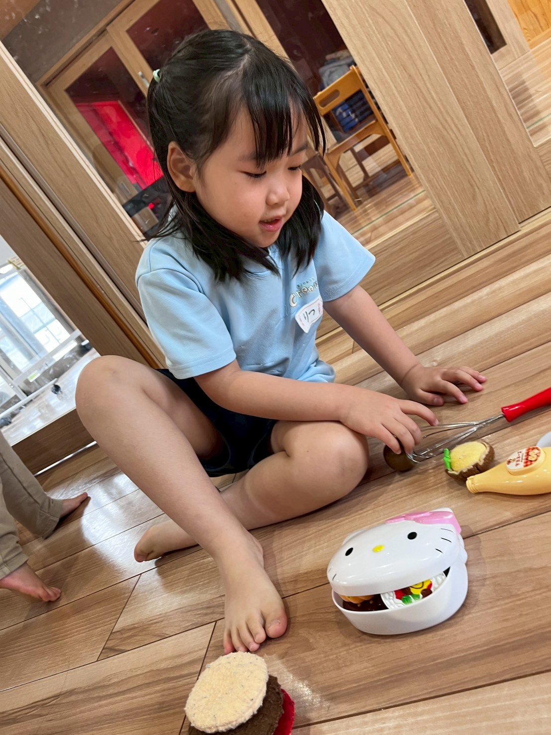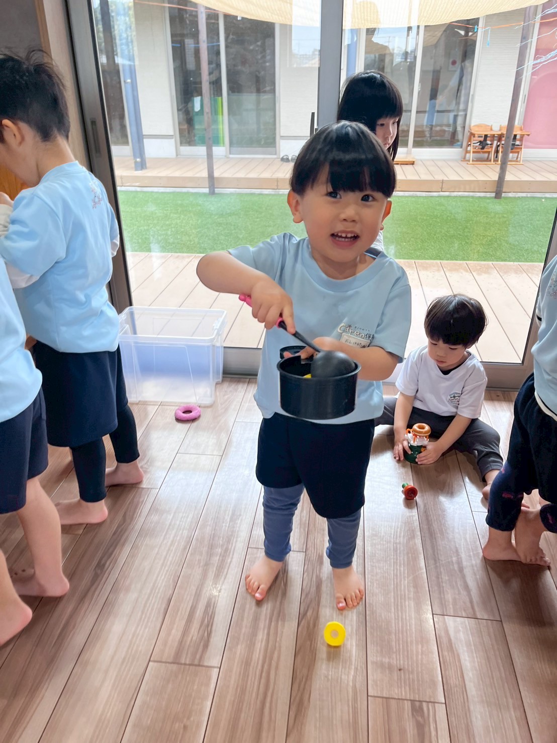 ままごととブロック遊びもしましたよ🎶みんな料理人のようにフライパンで料理したりお皿に食べ物を乗せて「できた✨」と見せにきてくれました🥰