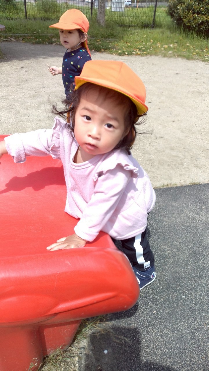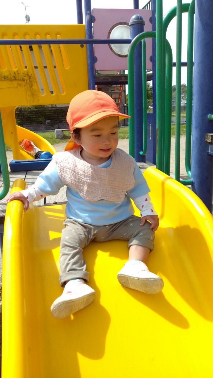 公園では先生と一緒に滑り台を滑ったり、座って砂や落ち葉を手に取っていました❤️
