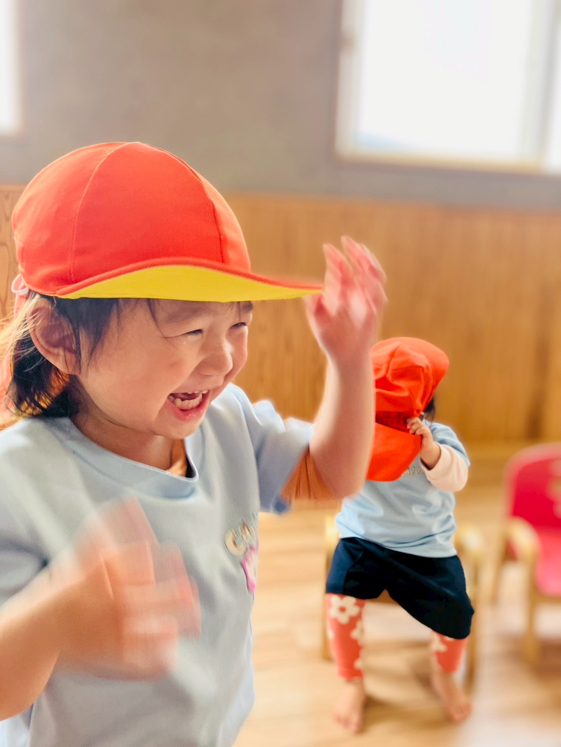 朝の会では、みんなが大好きな絵本「だるまさんが」を読むと、ニコニコ笑顔を見せてくれました😊