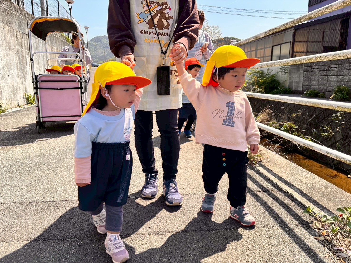 今日はひよこ組さんと一緒にくりえいとふれあい公園までお散歩しました🌞カートに乗車したり誘導ロープを持って頑張って歩きました✨バスや車に「ばいば〜い」と手を振ると優しいドライバーさんが挨拶してくれましたよ😍つつじやタンポポの春のお花も見つけました😄公園では滑り台が大人気で上手に滑りました😉スウィング遊具に乗ったり葉っぱ🍃を捜して遊んでいました😆お日様もぽかぽかで気持ちよく元気いっぱいでしたよ💕ぱんだ組🐼