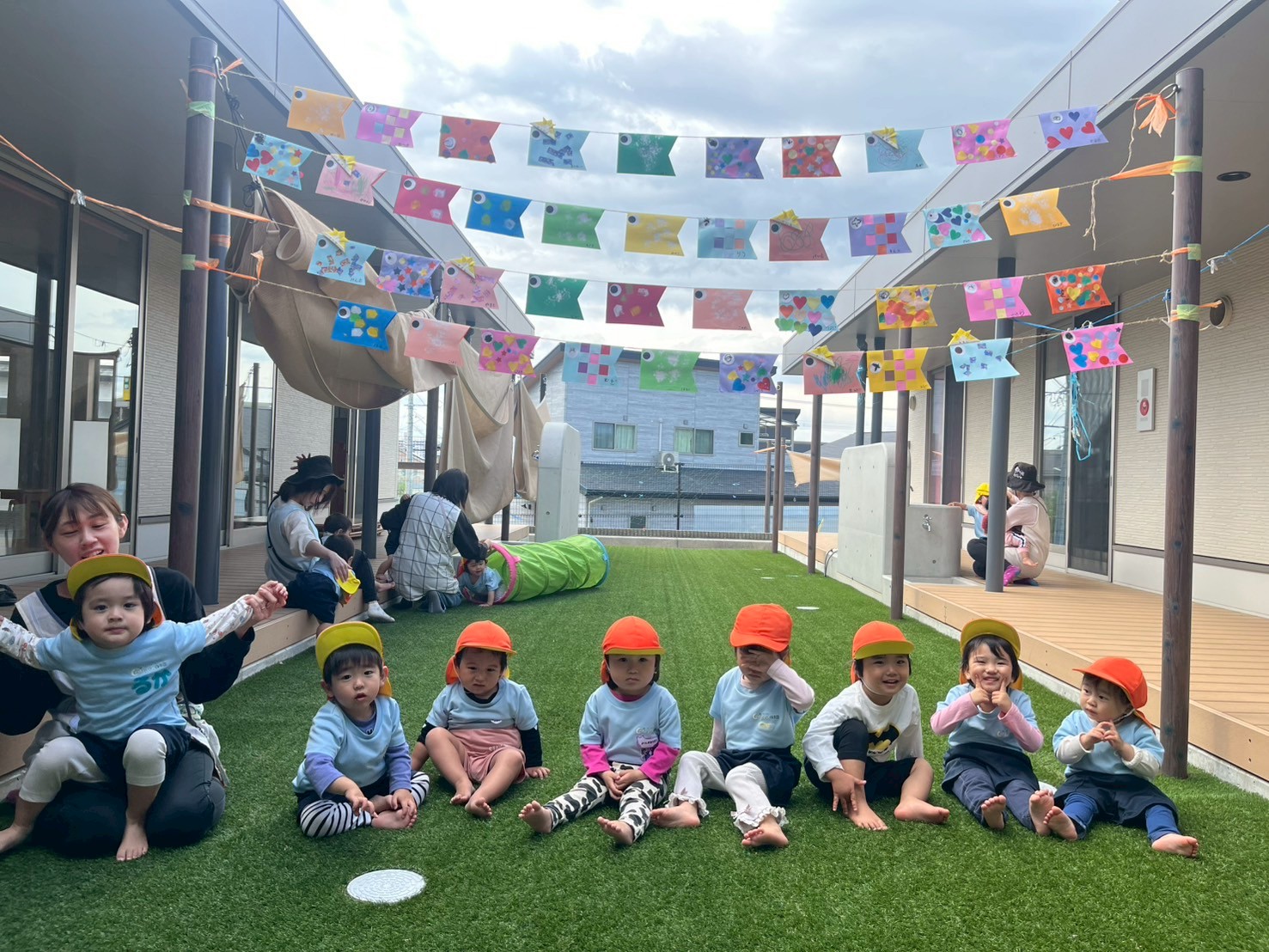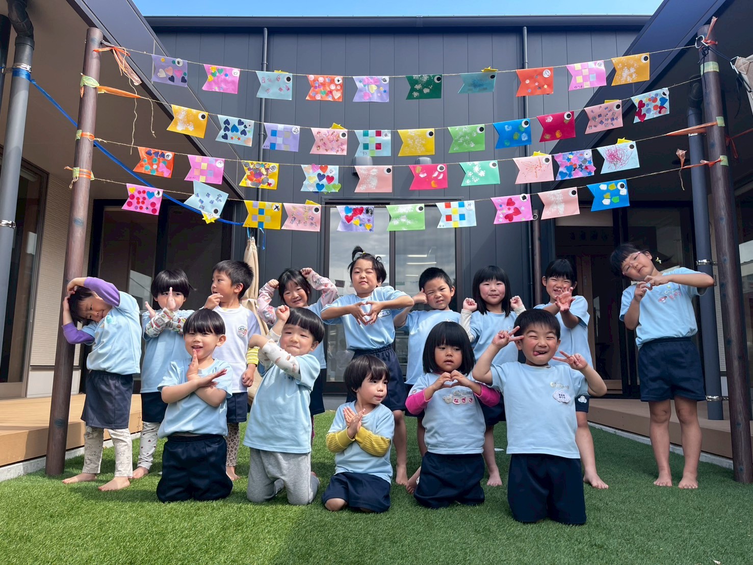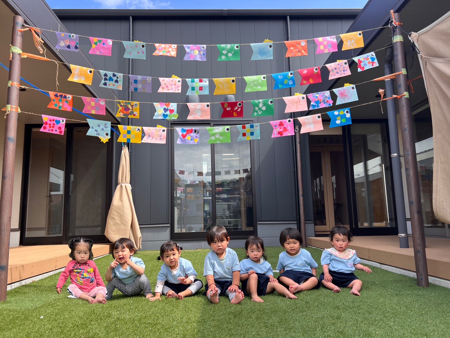 今日は製作した鯉のぼりと園庭で集合写真を撮りましたよ🎏