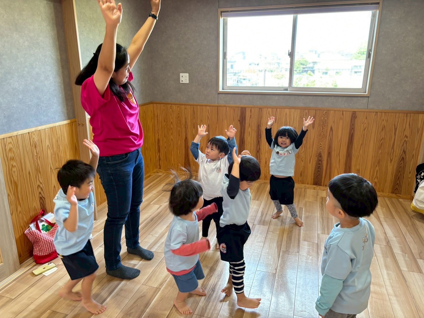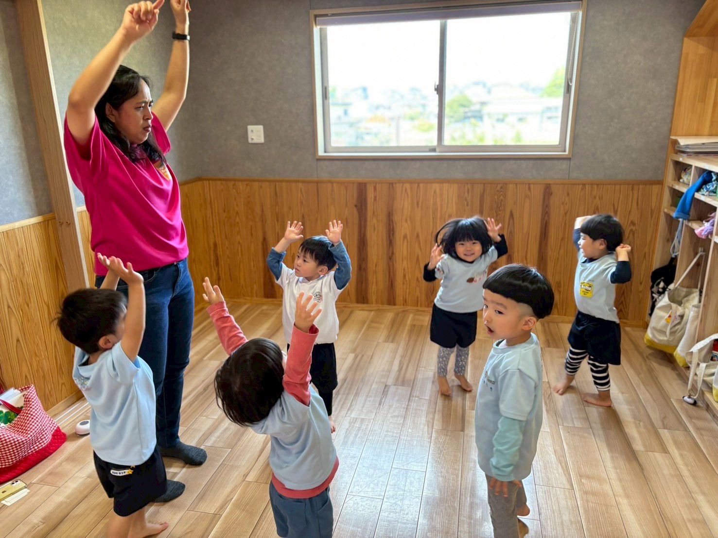 今日はうさぎ組、こあらきりん組に分かれて英語教室に参加しました🎀虫の単語や「右左、真ん中」の単語を講師と一緒に練習しました🐝🌈