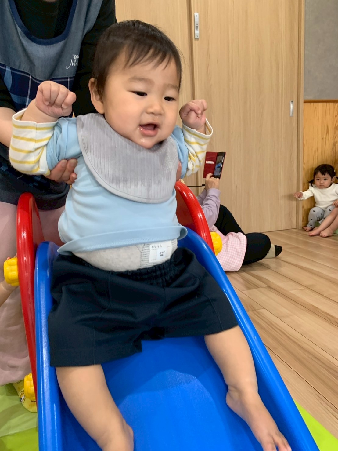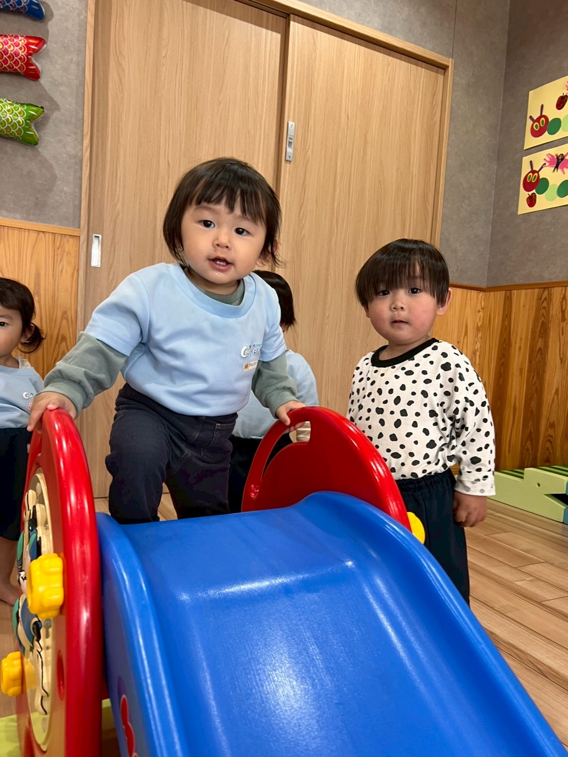 それから、りす組さん🐿️にお邪魔して、滑り台や平均台で一緒に遊びました✨